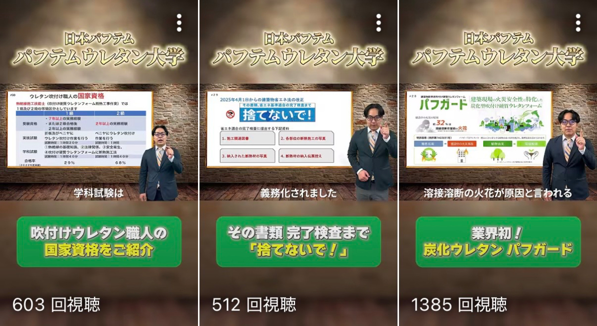 【short動画】日本パフテム株式会社 様 うめだ たかよ 動画制作者 OVERVIEW 企業様の取り扱う施工製品や建築に関する解説動画を毎月制作させていただいております。 解説動画になるのでいかに視聴者様に見やすく飽きられずに見ていただけるよう、テンポとデザインを意識して制作しております。 WEBSITE
