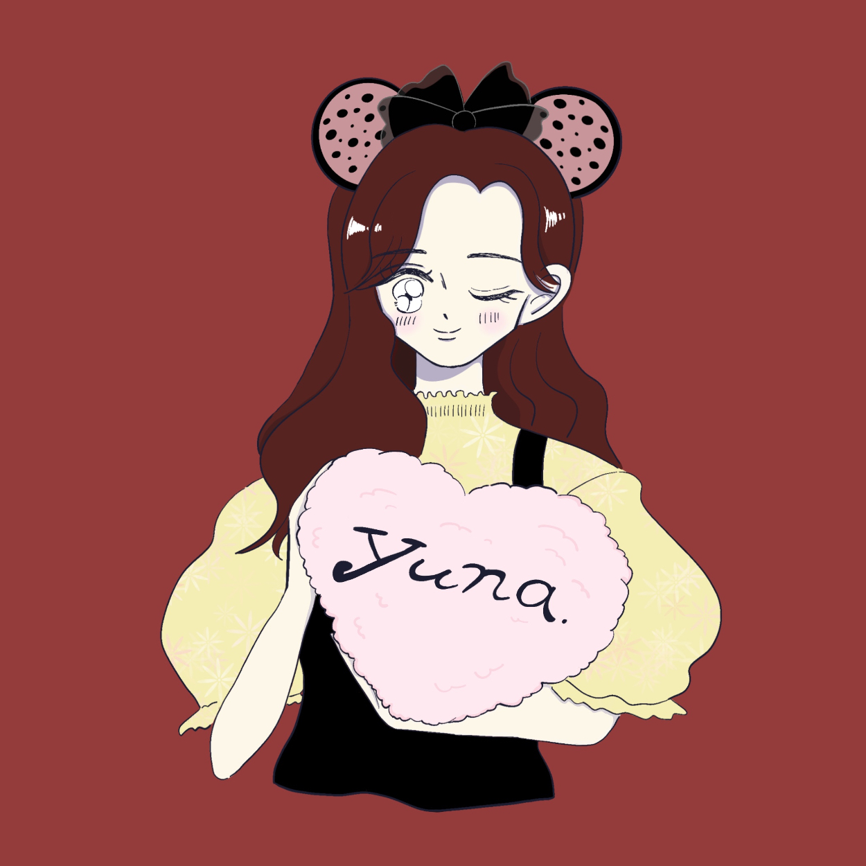 イラストの雰囲気を「ゆるふは・ほんわか」、希望の色のイメージを赤系でご依頼。