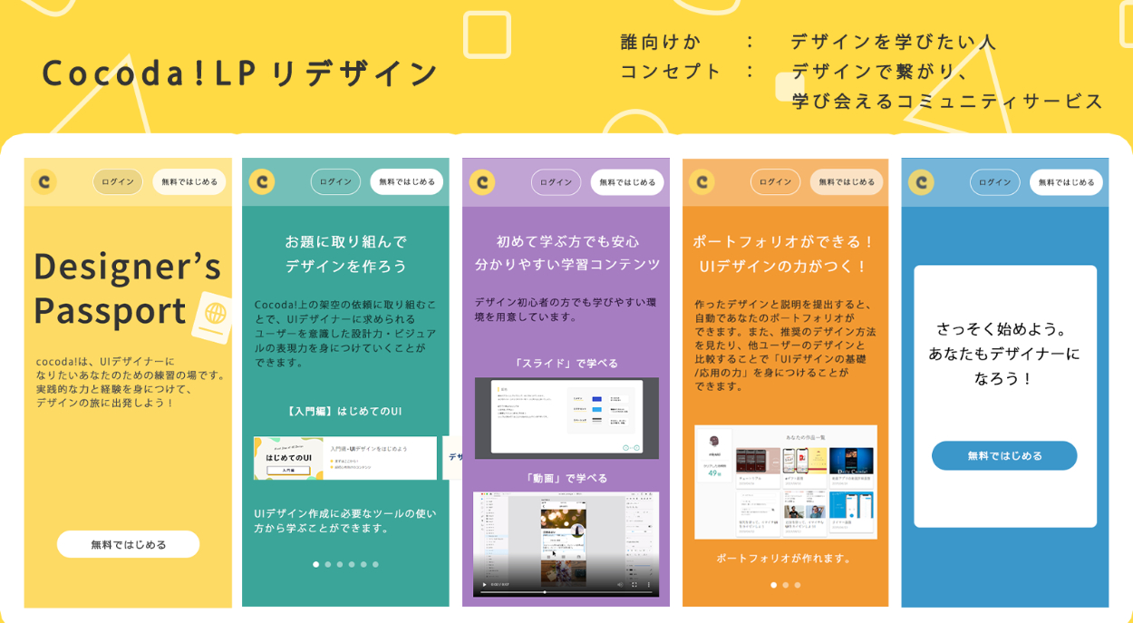 ・デザイン初心者の人でも取り組みやすくするために、「とっつきやすさ」をアピールするコンテンツを入れてみた。