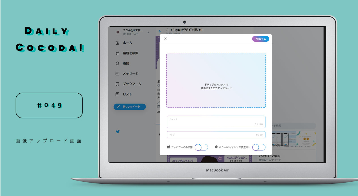 →SNSで投稿するときにどの媒体を使うか考えたとき、文字を入力しやすいのはやっぱりPCかなと思ったので、PCデザインを考えてみた。