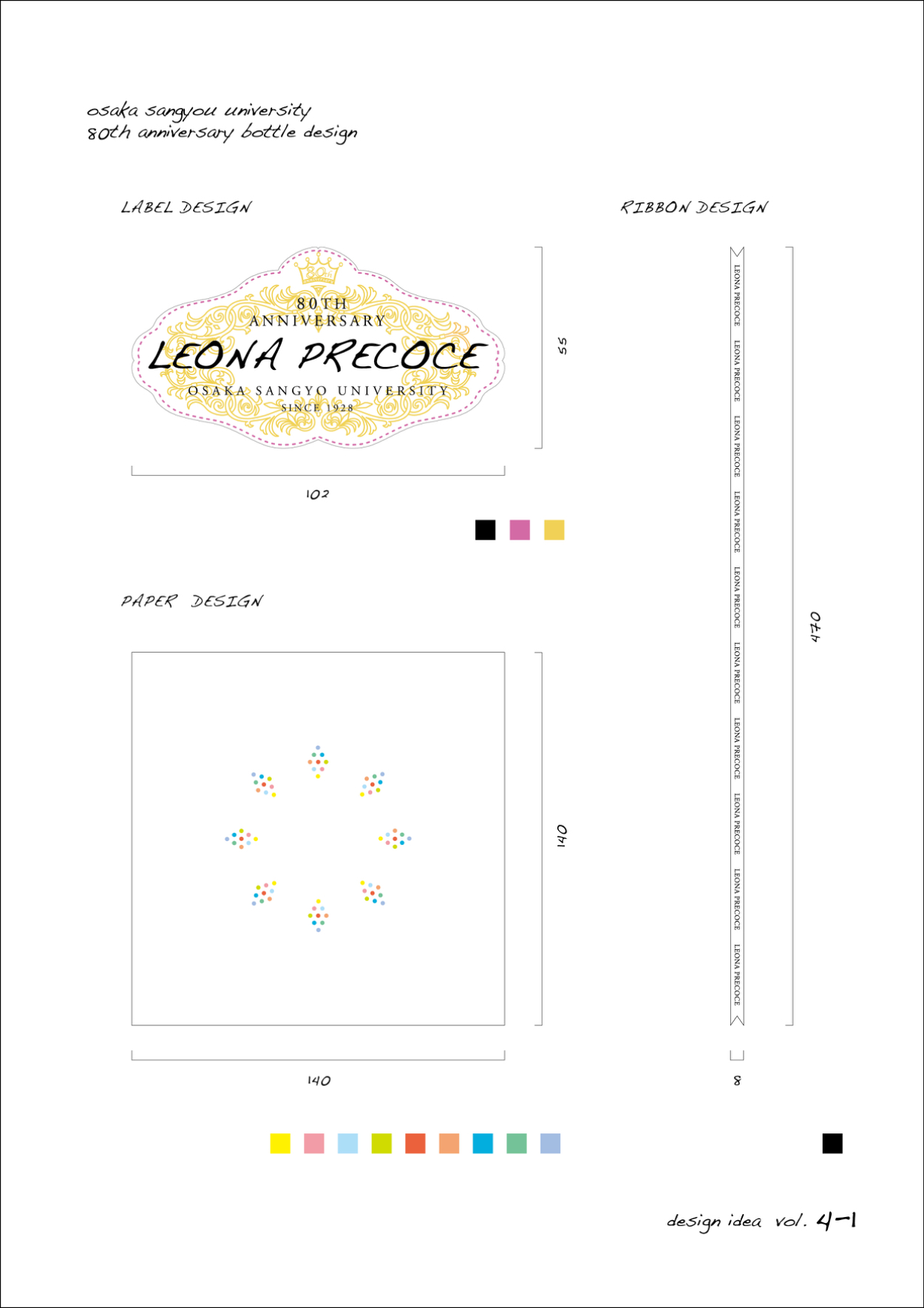 大阪産業大学創立80周年記念のために、同大学の卒業生が経営している白杉酒造と大学の連携作られた日本酒のラベルデザイン