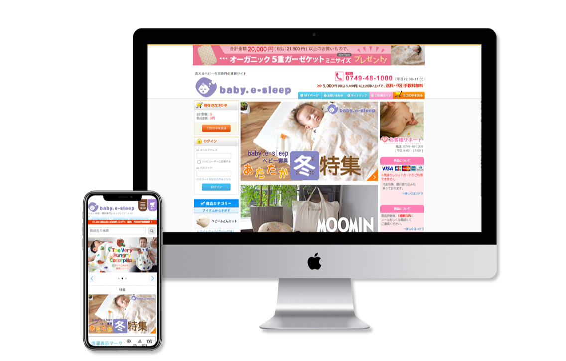 日本製のベビー寝具専門店として、約6年運営してきた自社ECサイトです。