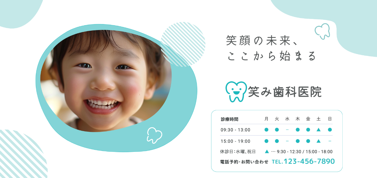 「子育て世代の方も安心して来院できる町の歯医者さん」をコンセプトに、子どもの明るい将来をイメージしたキャッチコピーを設定しています。