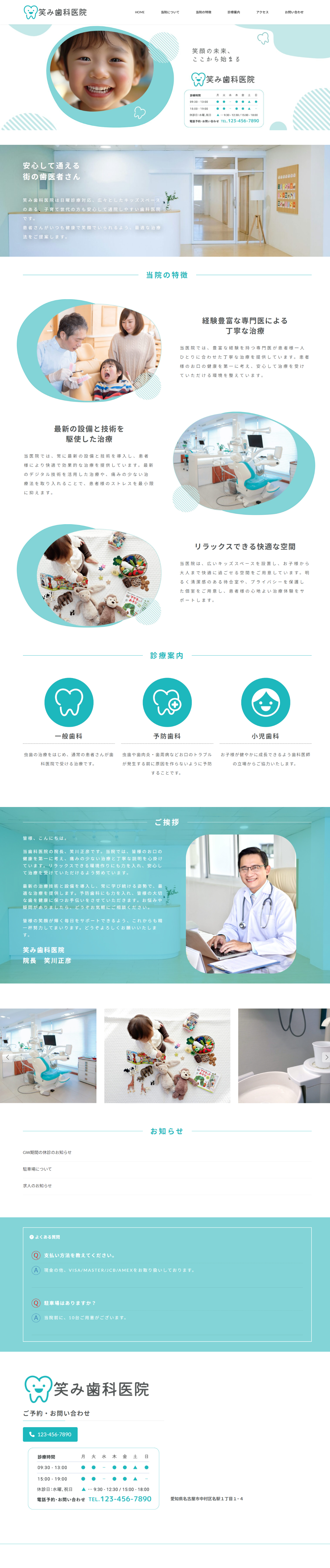 また笑顔のお子様の写真をメインビジュアルに設定することで、歯医者の怖いイメージを払拭し、親しみやすさを演出しています。