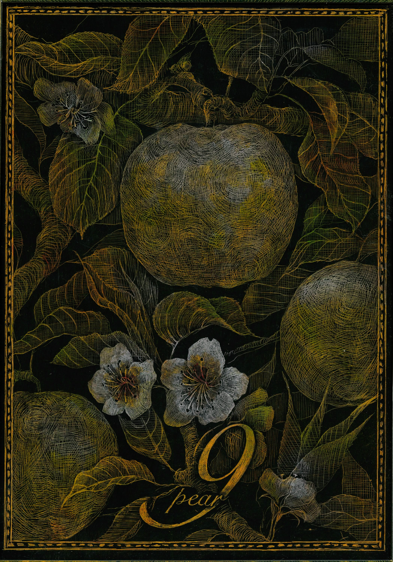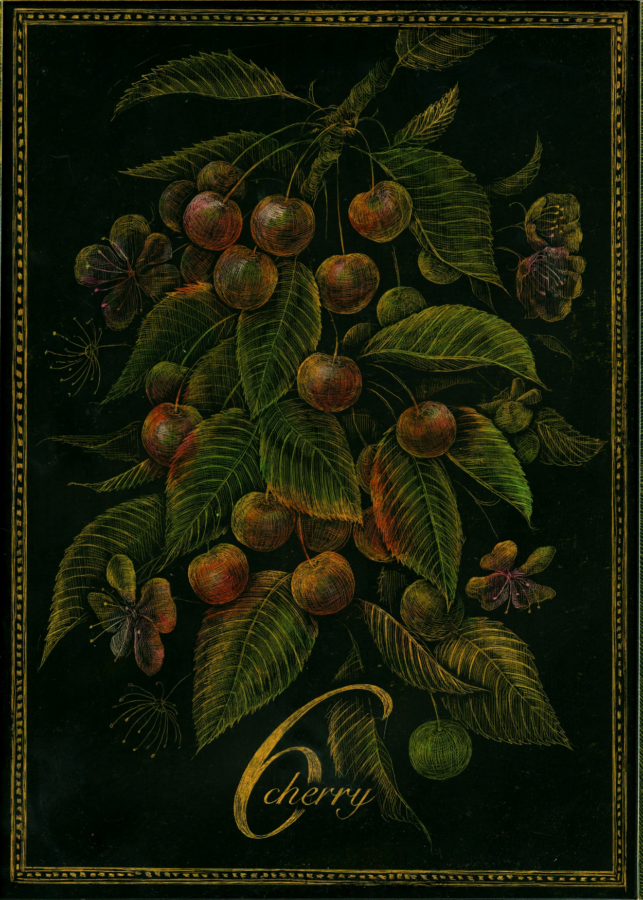 |イラストレーション|月毎の果実 Hiromi.M グラフィックデザイナー OVERVIEW 12をテーマに描いたイラストレーション。 月毎の果実。 クレヨンとアクリル絵の具の利用したスクラッチにによる技法で表現。 サイズ:297×38mm YEAR 2009