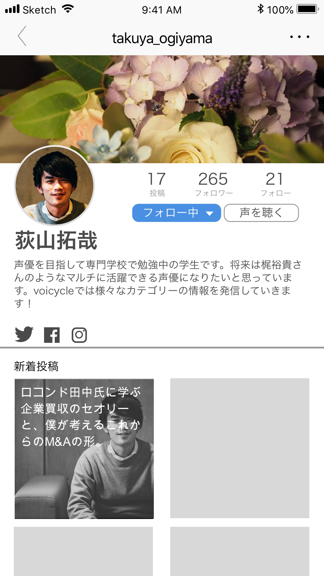 スタートアップ企業「Make HERO Inc.」が手がける、”声”でニュースを伝えるアプリ「Voicycle」のUI/UXデザイン・ブランディングを担当しました。 本サービスの企画段階からジョインし、アプリの機能検討やUXリサーチ、UIデザインなど幅広く対応しました。