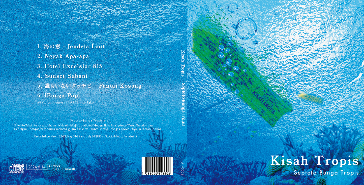 CDジャケットデザイン Yuichiro Uematsu Webデザイナー,ディレクター,UIUXデザイナー OVERVIEW JAZZバンドSepteto Bunga Tropisのアルバム、Kisah Tropisのアートワーク全般を担当。 YEAR 2024