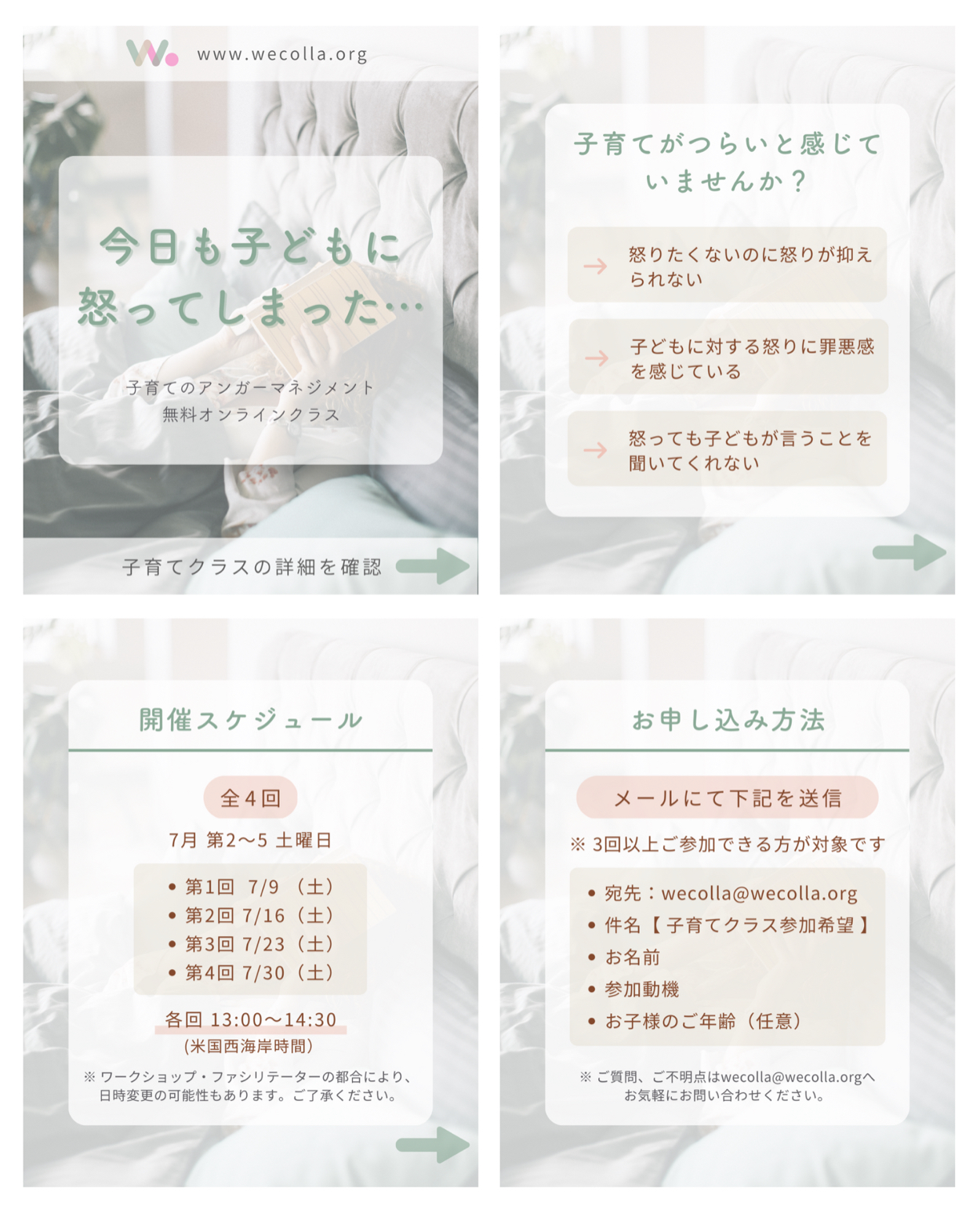 【 実案件 】オンラインで子育てクラスを開講するにあたり、HPやWeb媒体での告知に使用するフライヤーとSNS(Instagram, Facebook)に投稿するデザインを担当しました。使用ツール:Canva