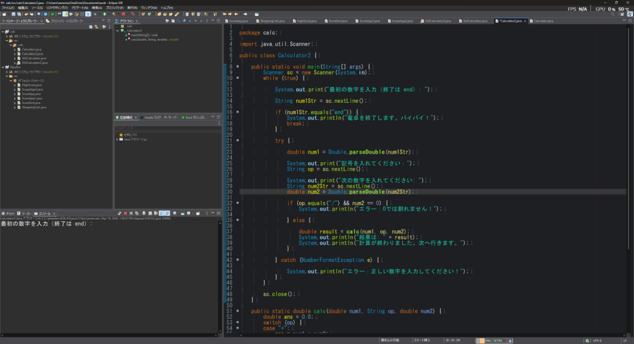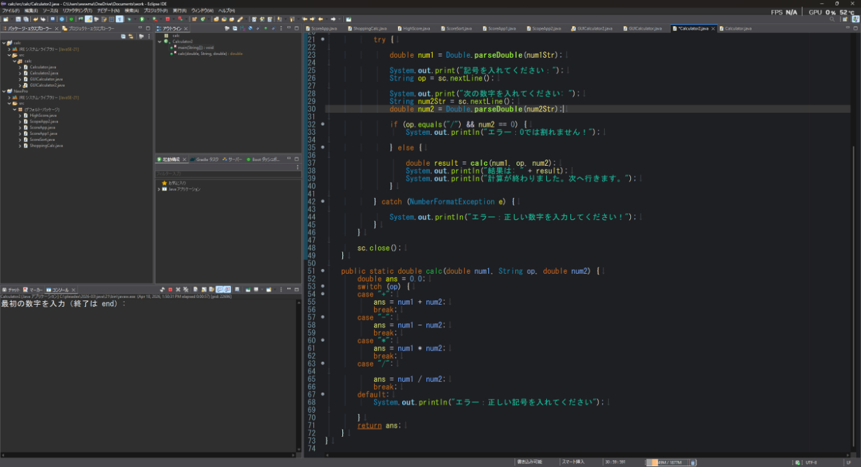 Javaプログラム言語を使ってeclipseアプリで計算ができるようにプログラムを書きました。