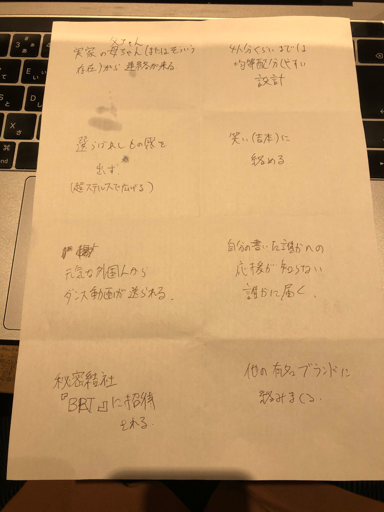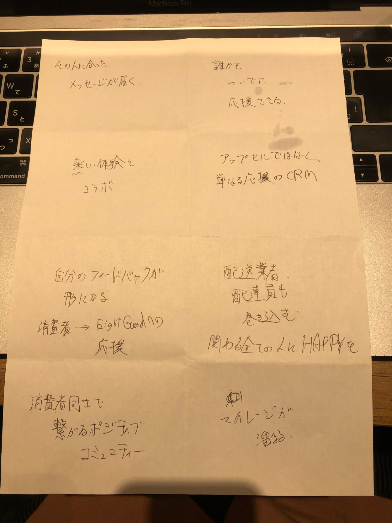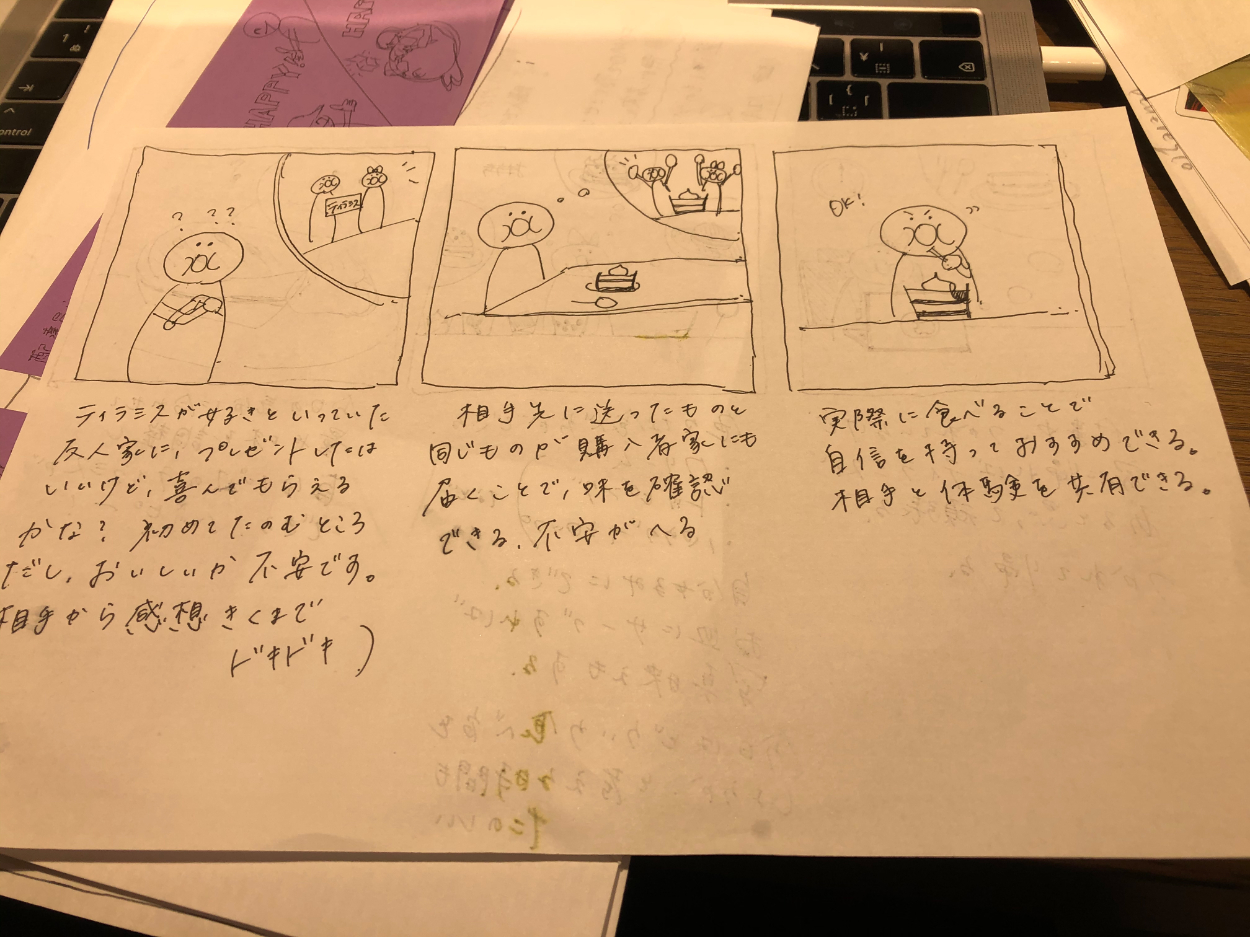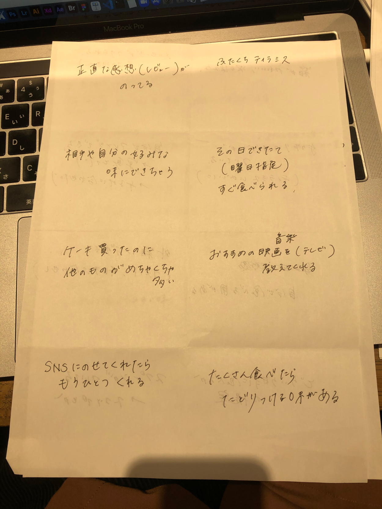 D2Cでスイーツを売る。その場合の体験設計をどうするのかを議論していた。 その折に、Design Sprintの発散フェーズを実施することになった。