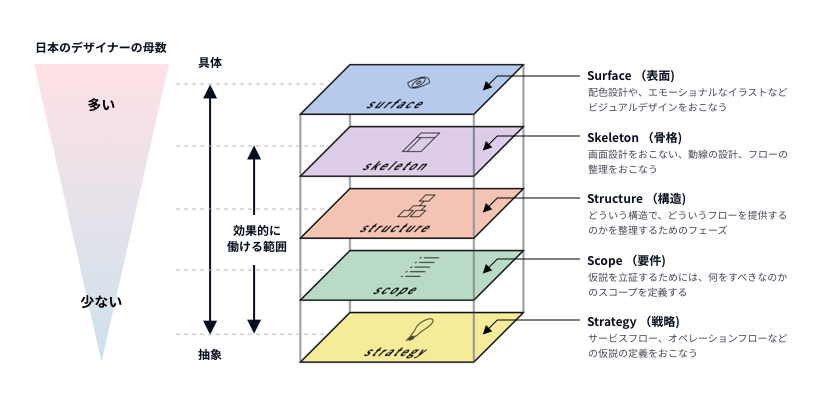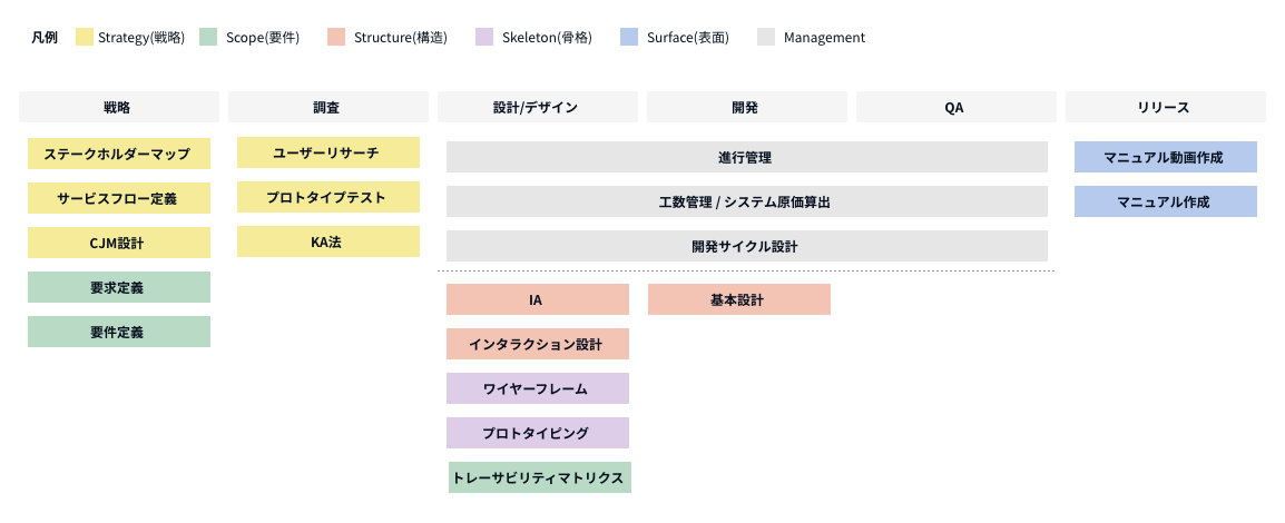 図1. Jesse James Garrettの5 Planes Modelに紐付けた業務範囲のイメージ