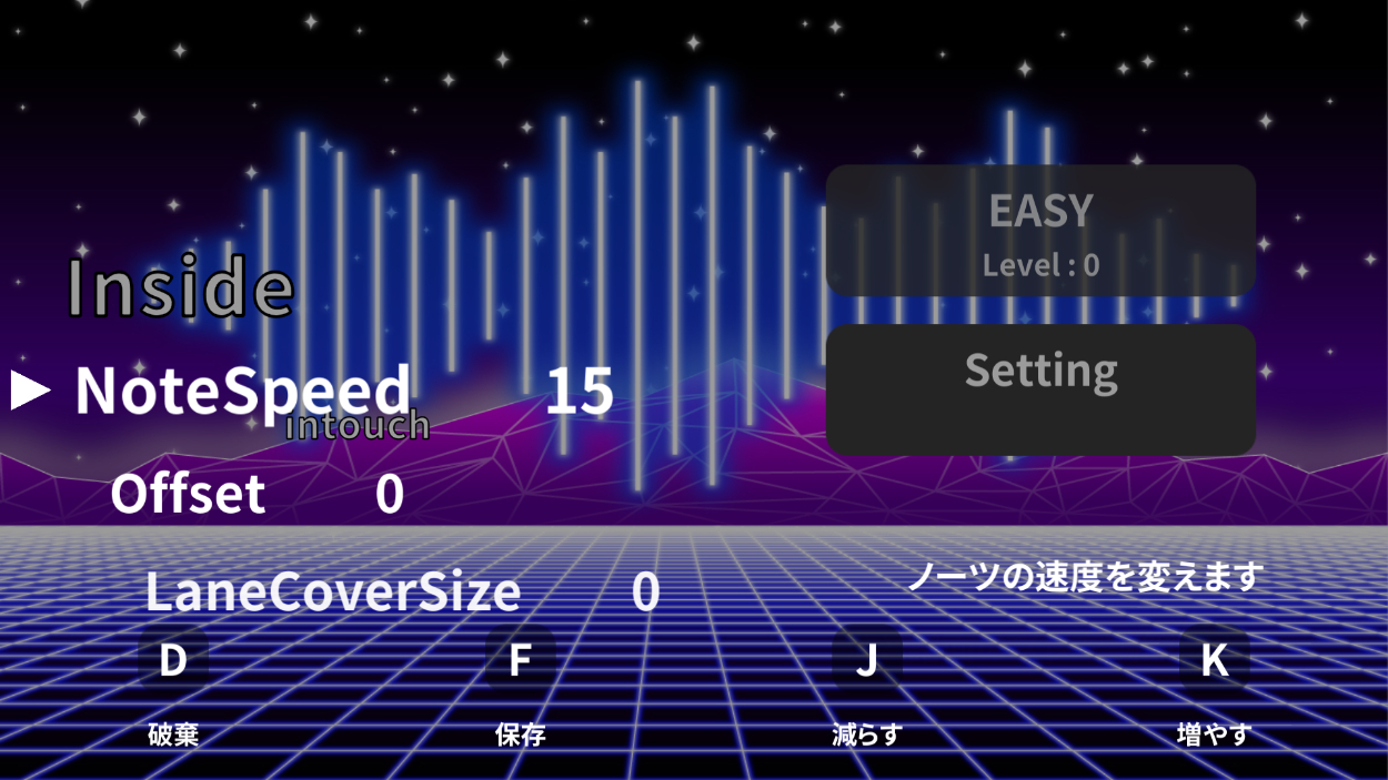 PCのリズムゲームは、最初はキーボードを見ながらでないと動かすことができないのではないかと思いました。なのでそのストレスなく遊べるようなリズムゲームを作りたいと思い、「好きな手の配置で、動かすことなく遊ぶことができるゲーム」をコンセプトとしたリズムゲーム「OverNotes」を制作しました。