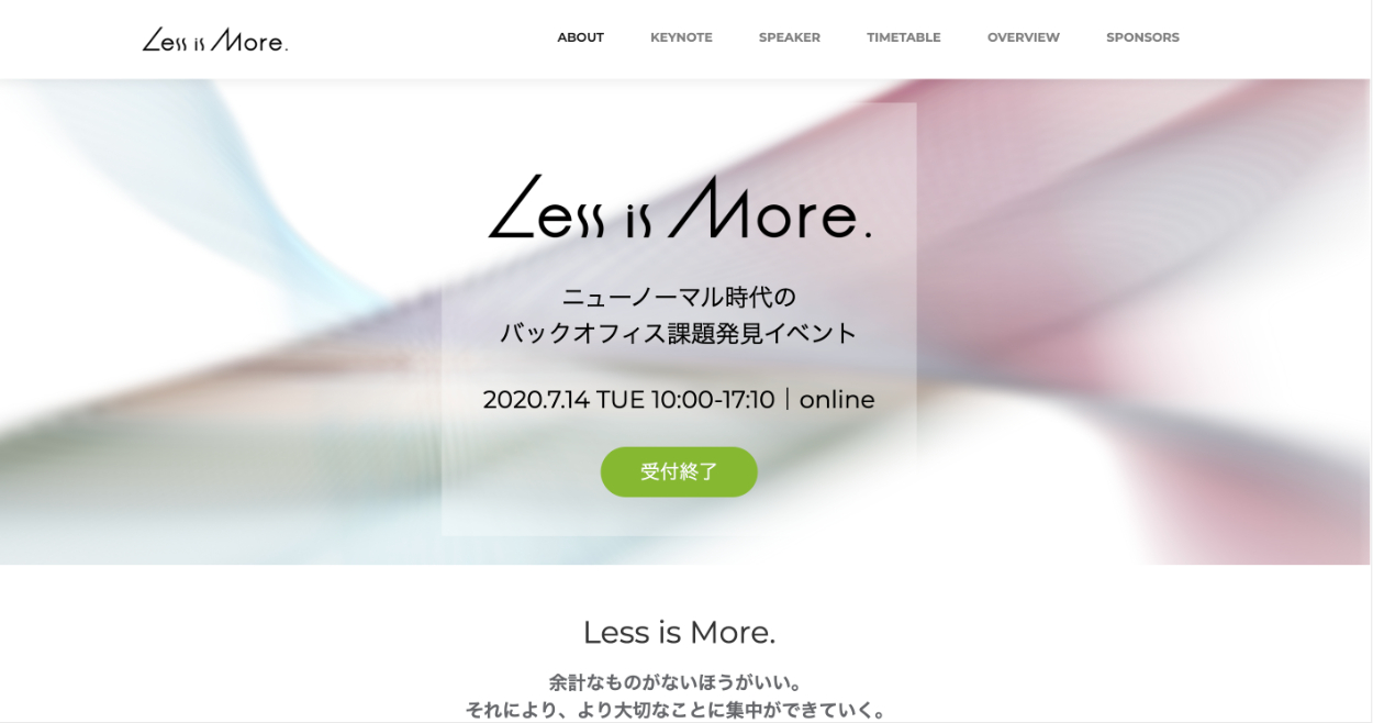 オンラインセミナーのLP作成 Kenji Nomura フリーランスwebデザイナー OVERVIEW コロナ禍のバックオフィス課題発見イベントのオンラインセミナー申し込みLPの作成を担当 YEAR 2020 - 2020 WEBSITE