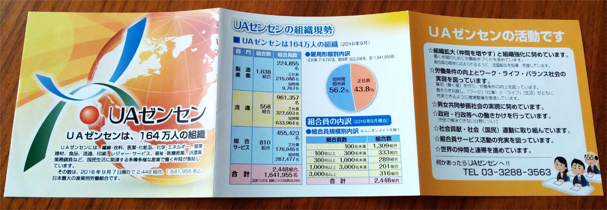 UAゼンセン様ミニリーフレット2016年 Komatsu 求職中 OVERVIEW 配布用リーフレットとして作成しました。95㎜×90㎜の三つ折り データが無かったので現物撮影・スキャンです。 YEAR 2016