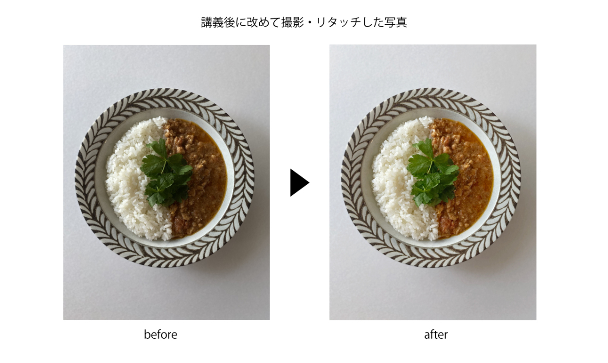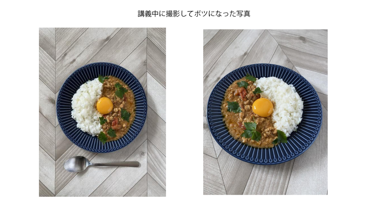 ・真俯瞰と斜俯瞰、反逆光などの撮影テクニックを学び、カレー素材を撮影。