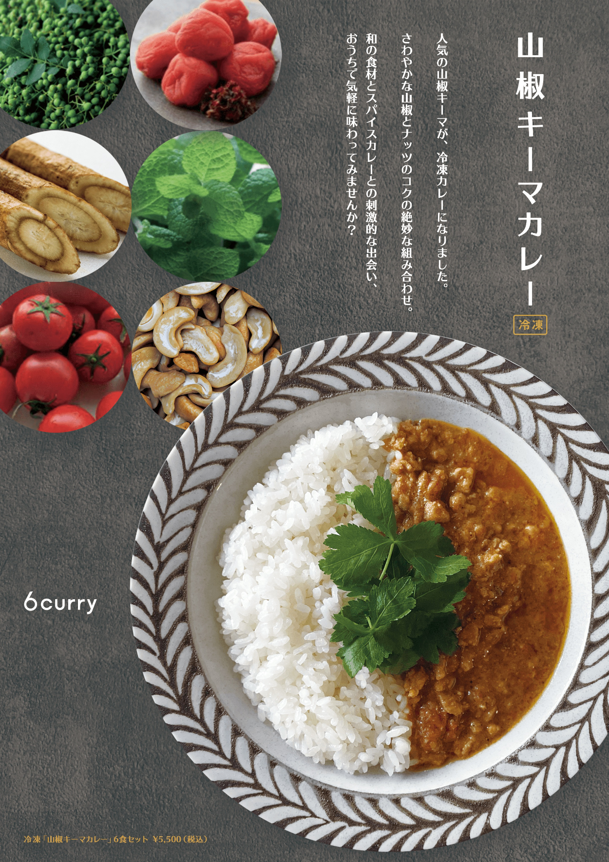 ・6curryが販売している「山椒キーマカレー(冷凍レトルト)」をより多くの人に知ってもらう、購入して食べたいと思ってもらえるような販促物を制作する