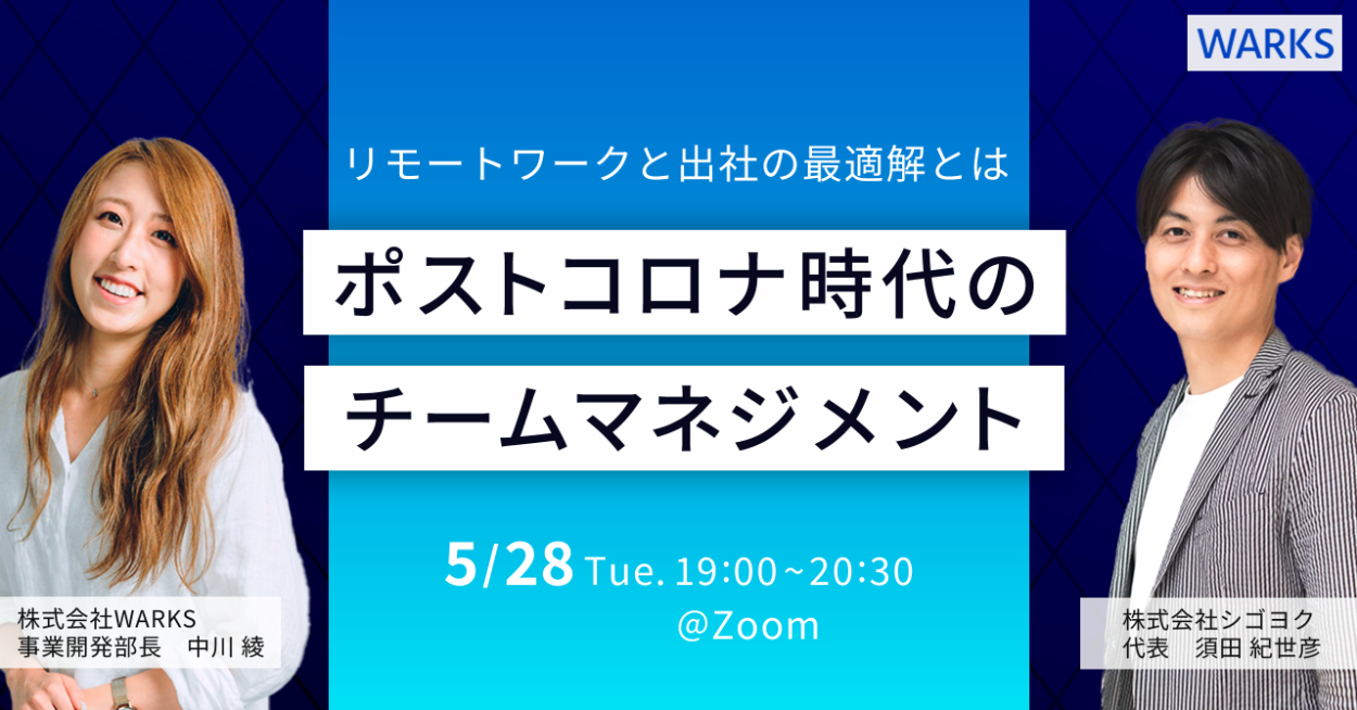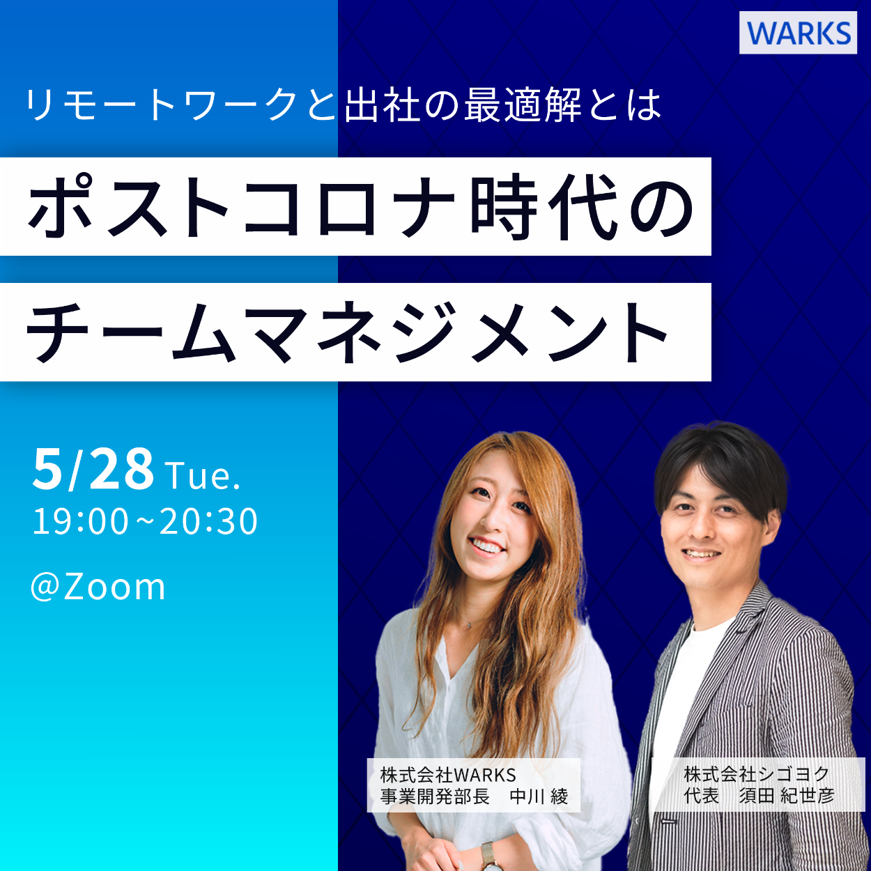 ・企業に対して新時代のワークスタイルコンサルティングを行う株式会社WARKSが、パートナー企業である株式会社シゴヨクと共同主催するオンラインセミナーの告知と集客。