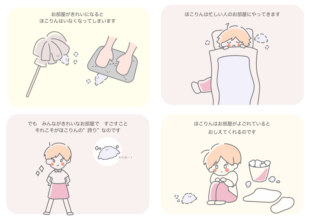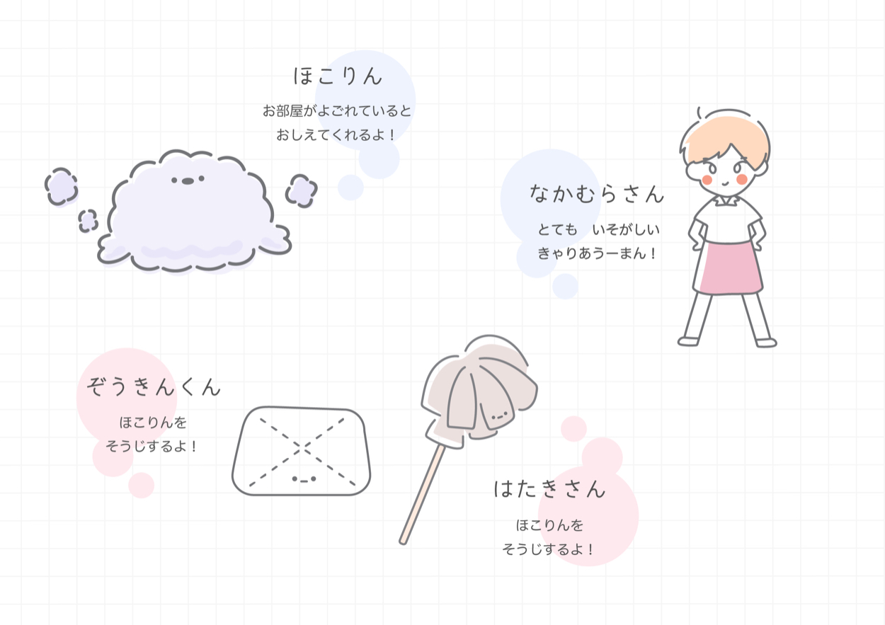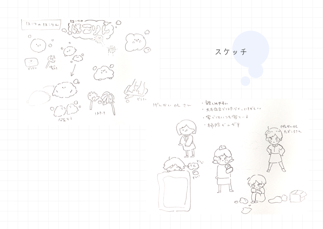 自身の部屋を片付ける余裕がない時に癒してくれる生き物がいたらいいな、という気持ちから着想しました。ユーザーの心の拠り所になるように作成しました。