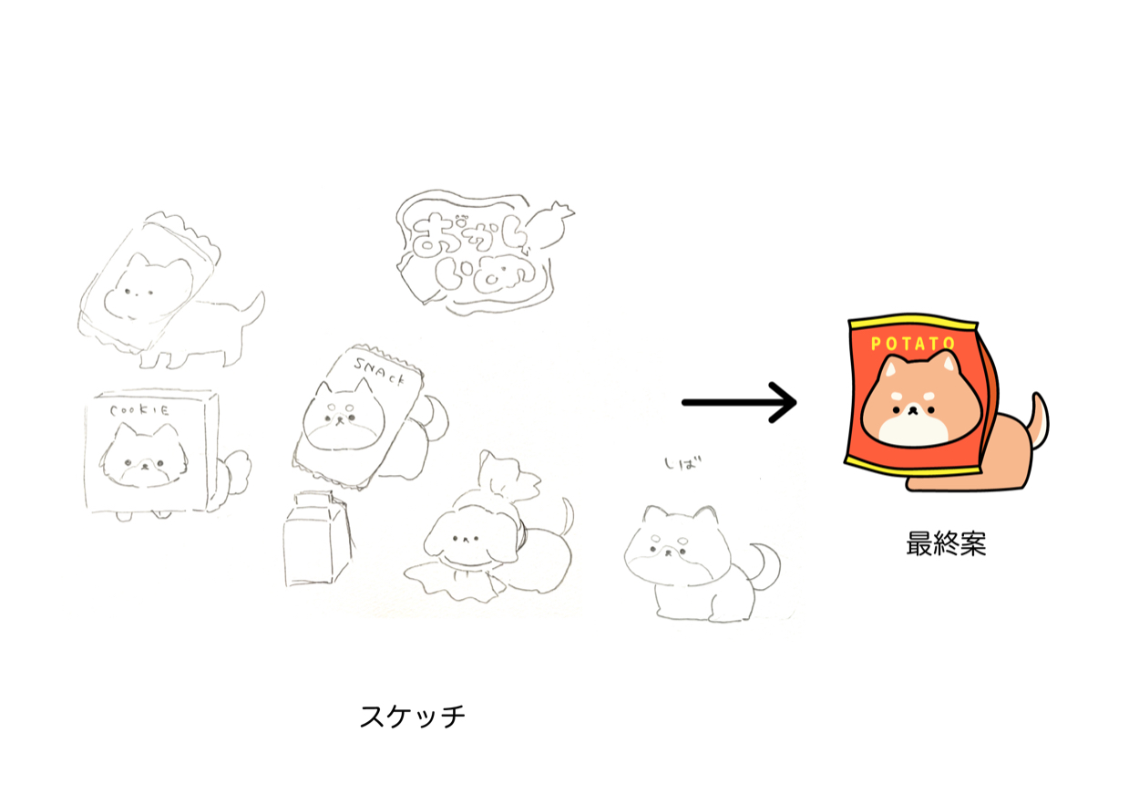 プライズ景品としての販売を想定しました。身近なモチーフとカラフルな色使いで、キャッチーなデザインに仕上げました。