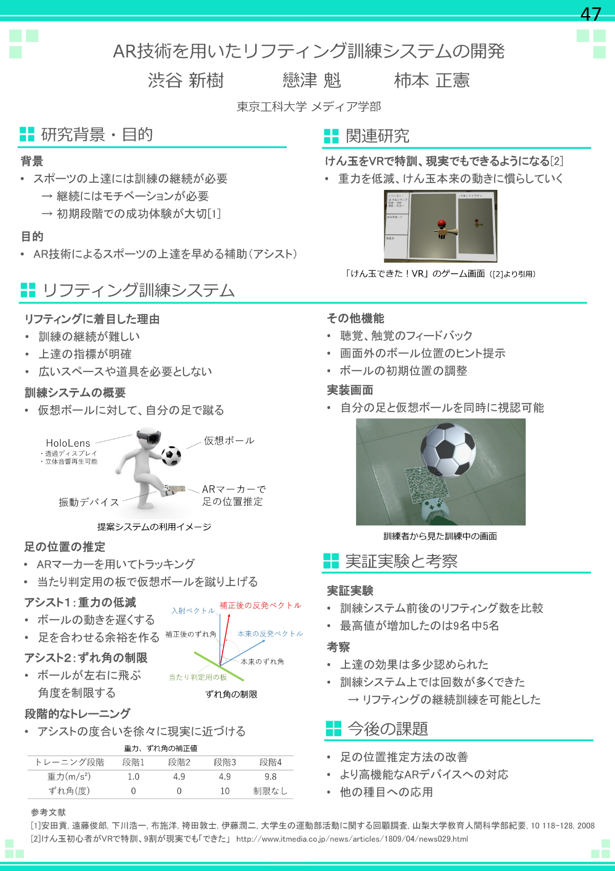 卒研でHoloLensを用いた、初心者のためのリフティング訓練システムを開発しました。