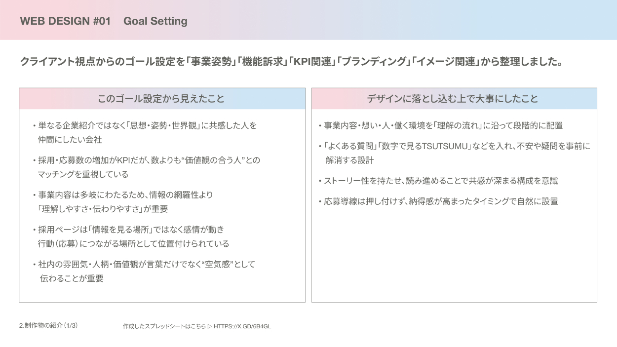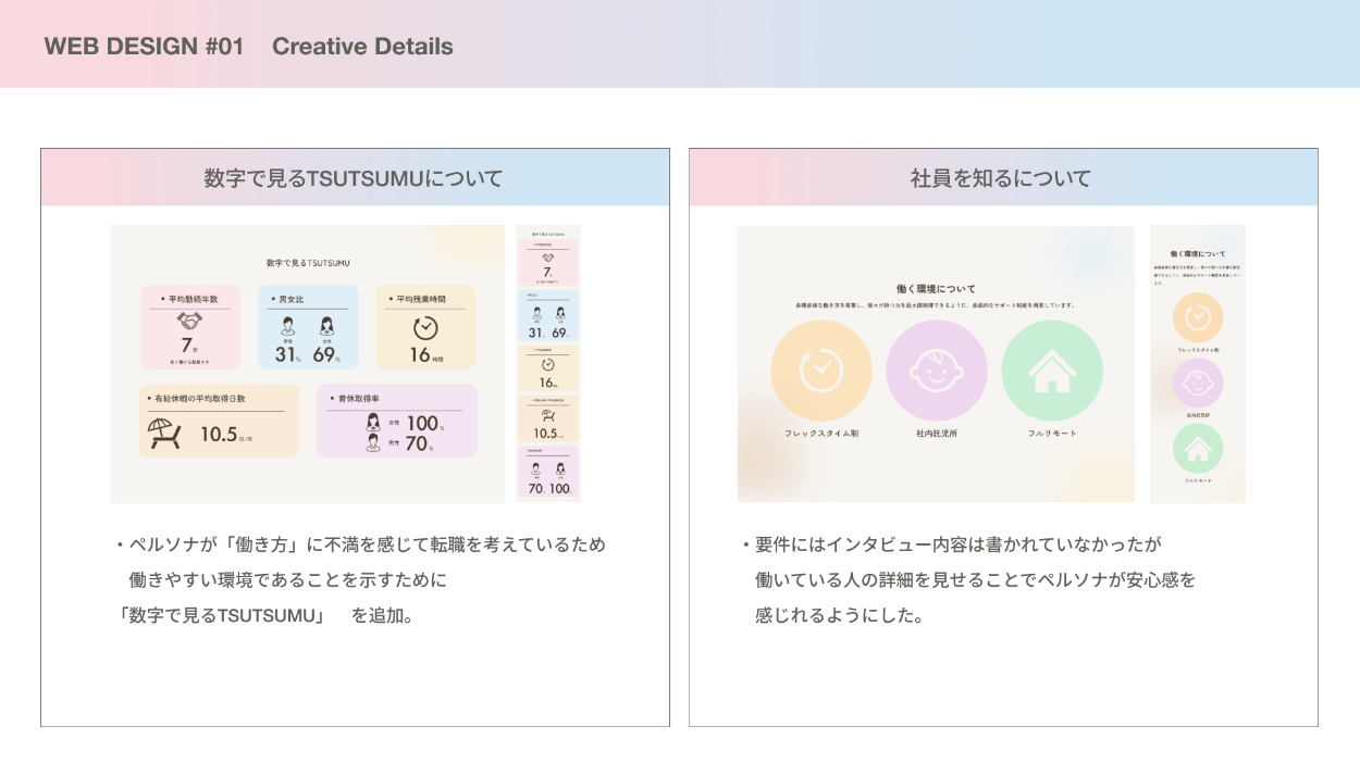 また、理念や想いを先に伝える構成とし、読み進める中で「自分はこのカルチャーに合うか」を自然に判断できる情報設計を意識しました。