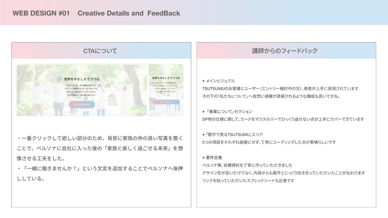 6. セクションごとのデザインの工夫・講師からのフィードバック