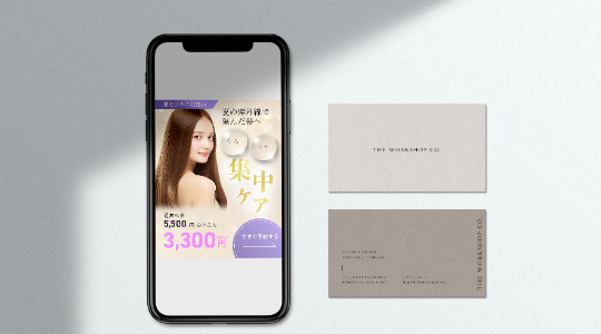 2)「親しみ」を表現するために優しい印象のあるベージュをベースカラーに使用、背景にぼかしをいれている
