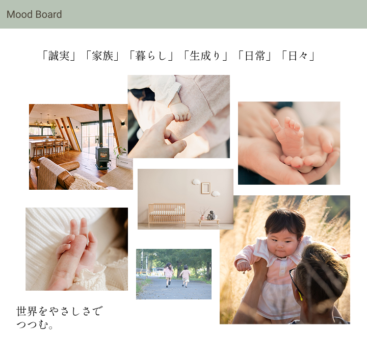 ・理想主義的な子育てではなく、日常の延長にある風景を切り取ることで、企業の誠実さと信頼感が自然に伝わる世界観を設計しました。