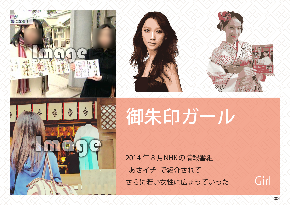 ブームの一つに「御朱印」を集めるというのがあります。神社仏閣巡りというのは。学校の修学旅行や年配者だけではなく、若い女性たちにも広がり、ブームに拍車をかけていました。私の周りの女性の方々も御朱印集めを趣味にしてる人が多かったです。