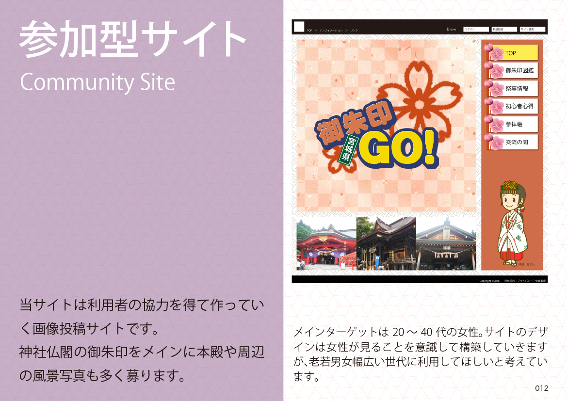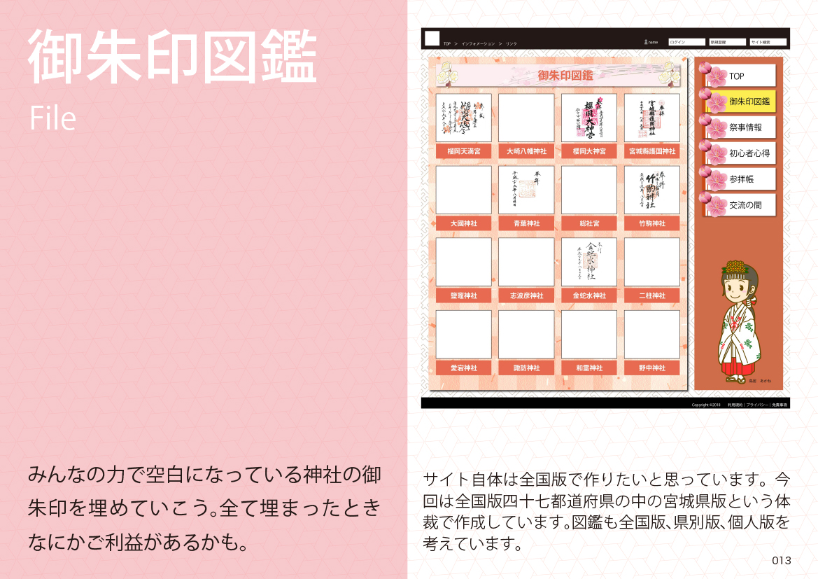 このサイトを全国版で作るか、または都道府県ごとに作るか考えなきゃないことはたくさんあります。実際に作ろうと思ったら膨大な情報量になるだろうと思います。そのためには人では必要ですし、神社とのご理解も得なければなりませんし、企業との連携も必要だとは思います。