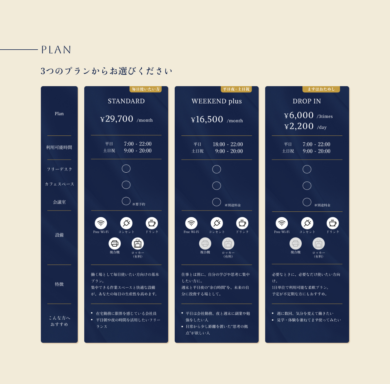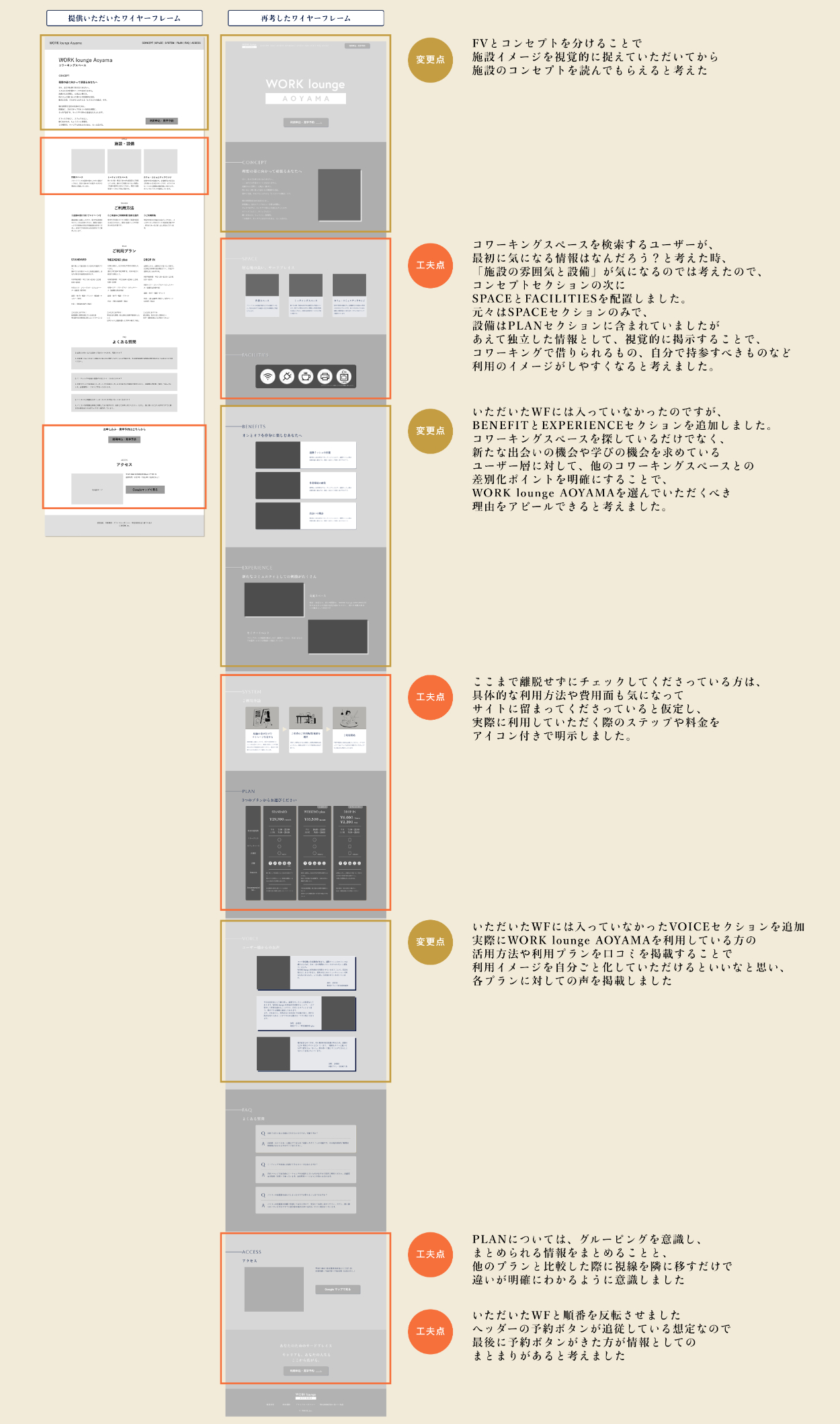 - 元々のワイヤーフレームには含まれていなかった項目ですが、それぞれのプランを利用されているユーザーのリアルな声を事前に知ることで、施設の利用イメージをつけていただくことを目的としました