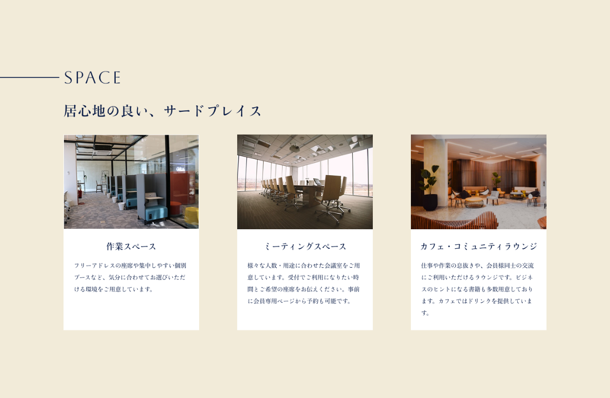 - コワーキングスペース全体の雰囲気がわかる写真を少しでも多く感じていただけるように、ヘッダーは背景なしとしました