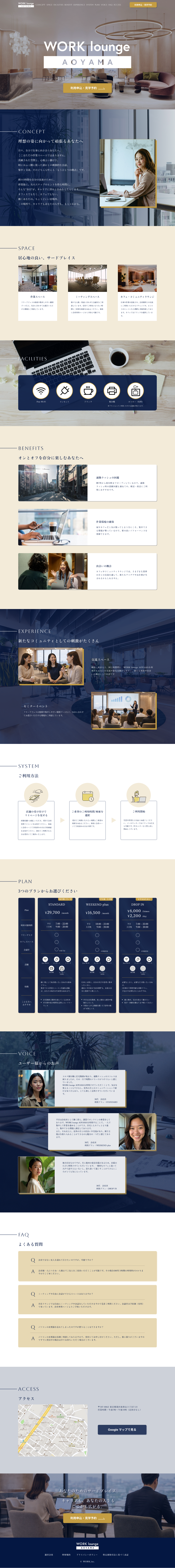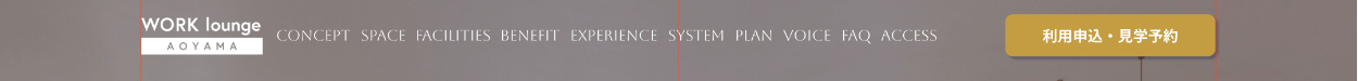 - 中央にWORK lounge AOYAMAのロゴを配置し、直下に申し込みボタンを設置することで、必要な情報が中心に集まるようにしました