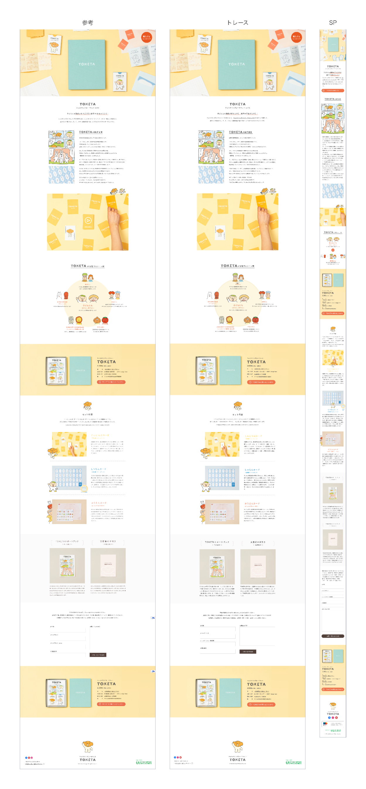一般社団法人 福祉とデザイン様(https://toketa.jp/)のLPをトレースさせていただきました。