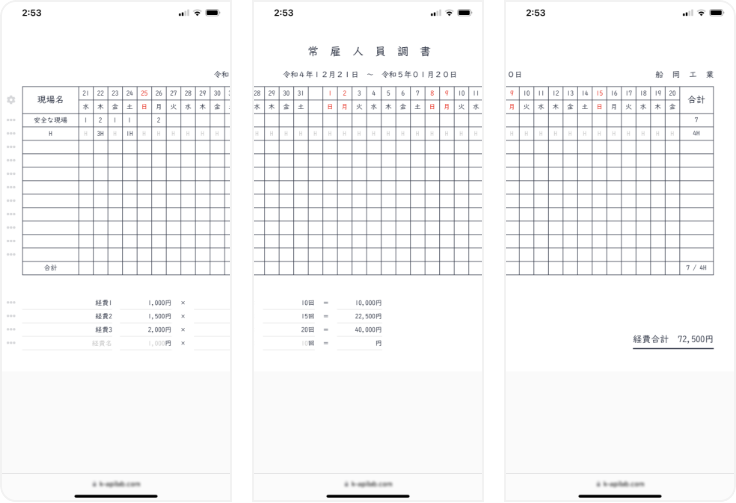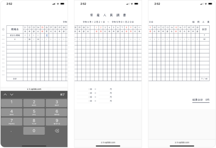 次に、手書きで行っていた書き込みを入力で行えるようにしつつ、合計も自動で計算されるようにしました。