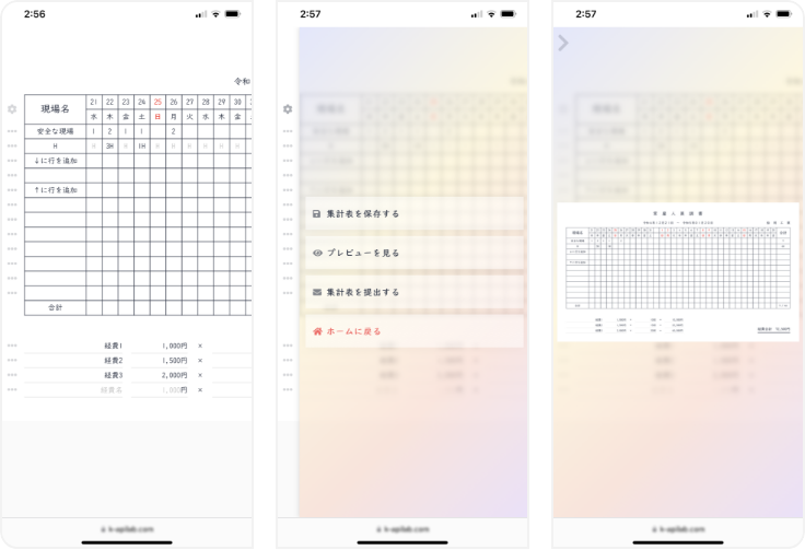 最後に「集計表を提出する」ボタンをワンタップするだけで、元請けの会社に提出できるようにしました。
