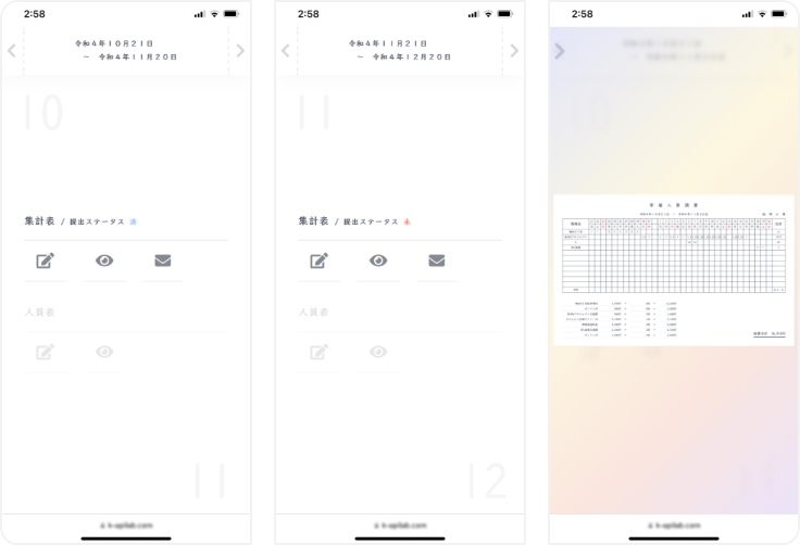 ホーム画面では、過去に提出した集計表のプレビューを見たり、集計表を提出したか確認することもできるようにしました。