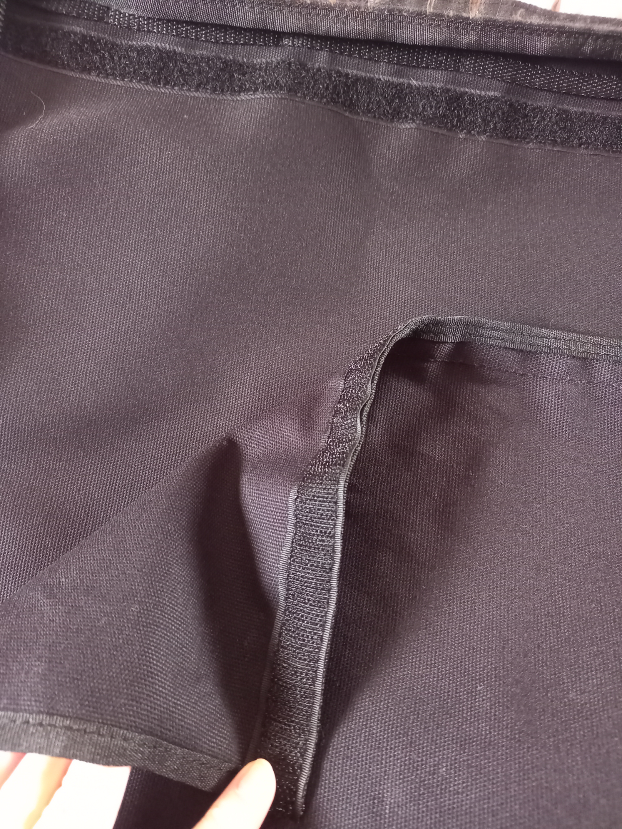 缶バッジを付けたら取り外していた布部分をマジックテープの部分に戻して、カバー部分のファスナーを閉じれば簡単に痛バの完成です。