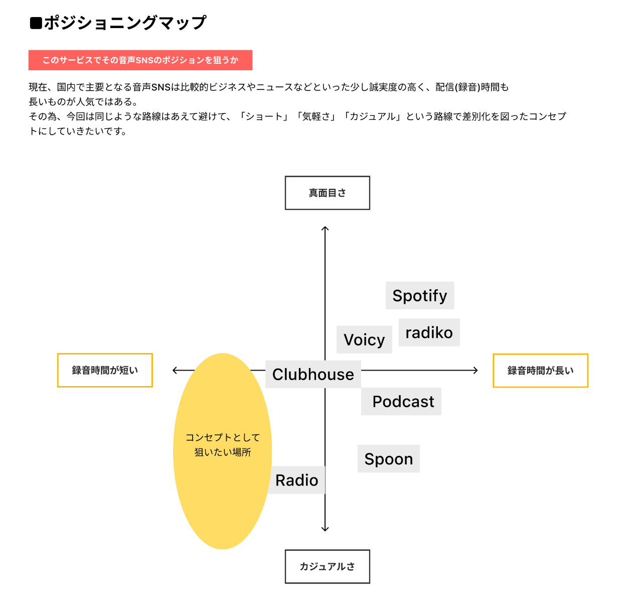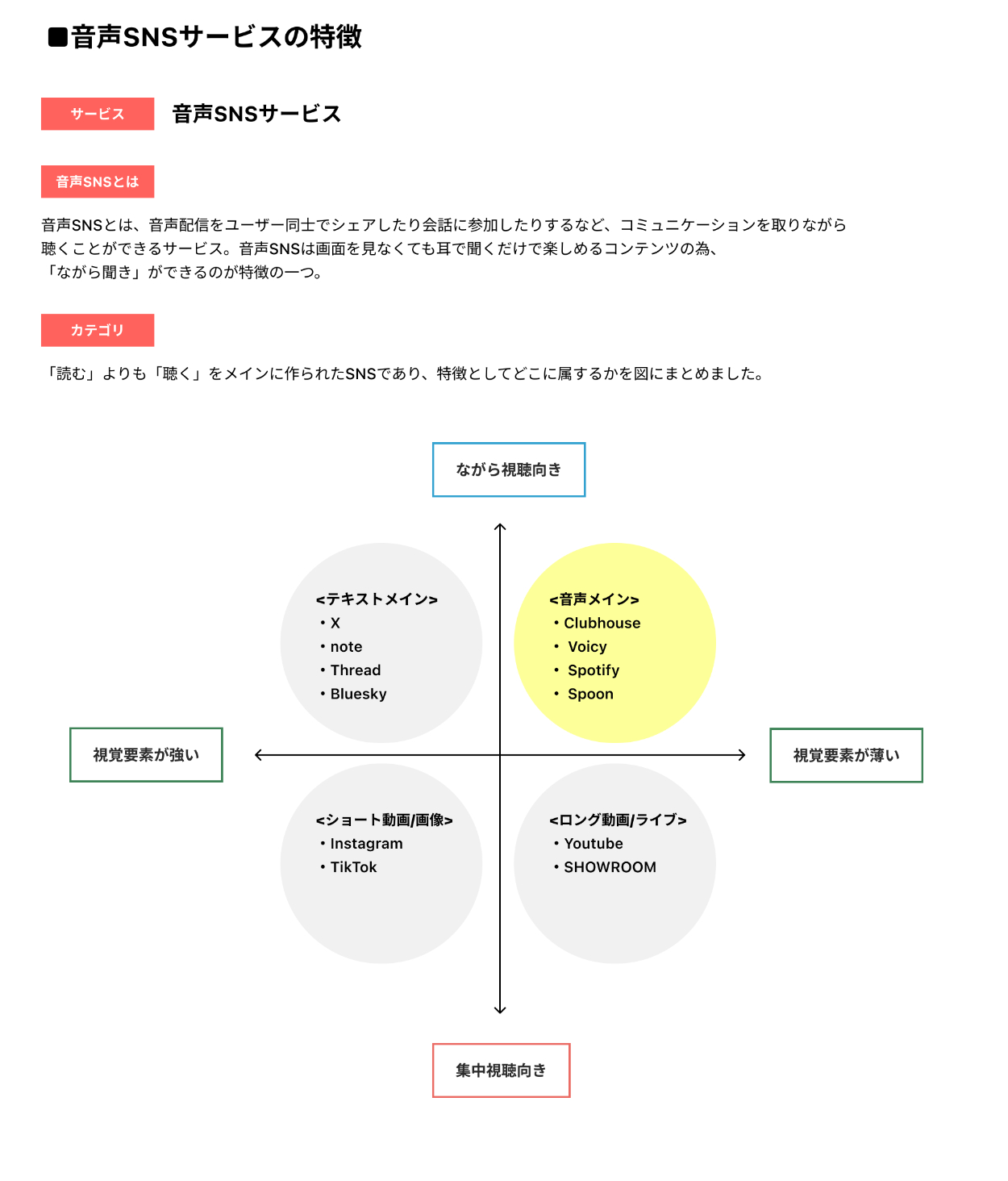 ①音声SNSサービスの特徴/今回作成するサービスのポジションを決める