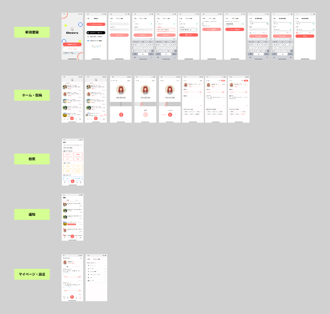 DailyUIのように1日1画面で作っていこうと思ったのですが、作成してみると「このボタンを押したら次はどうなるんだろう?」「どう遷移するのだろう?」と考えていくうちにどんどん枚数が増えてしまい、時間もかけてしました。