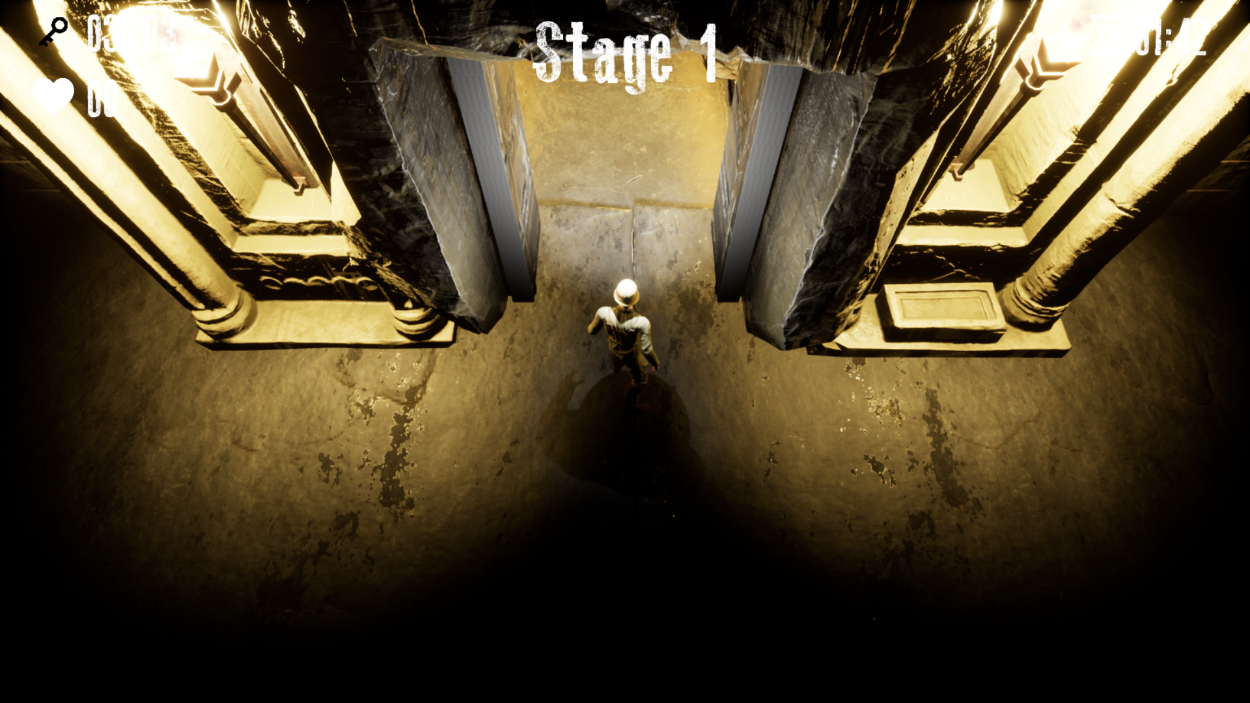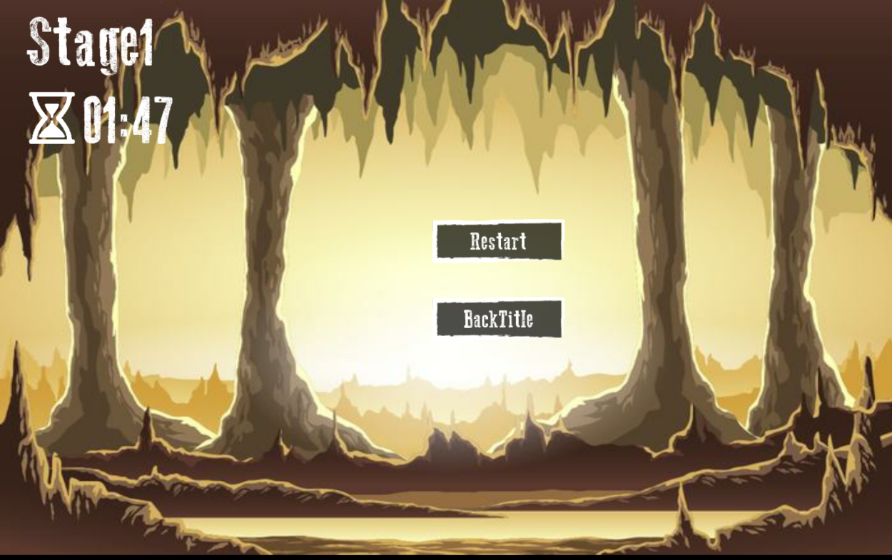 こちらはプレイ画面です。右上の砂時計が経過時間、左上のハートは残機となっています