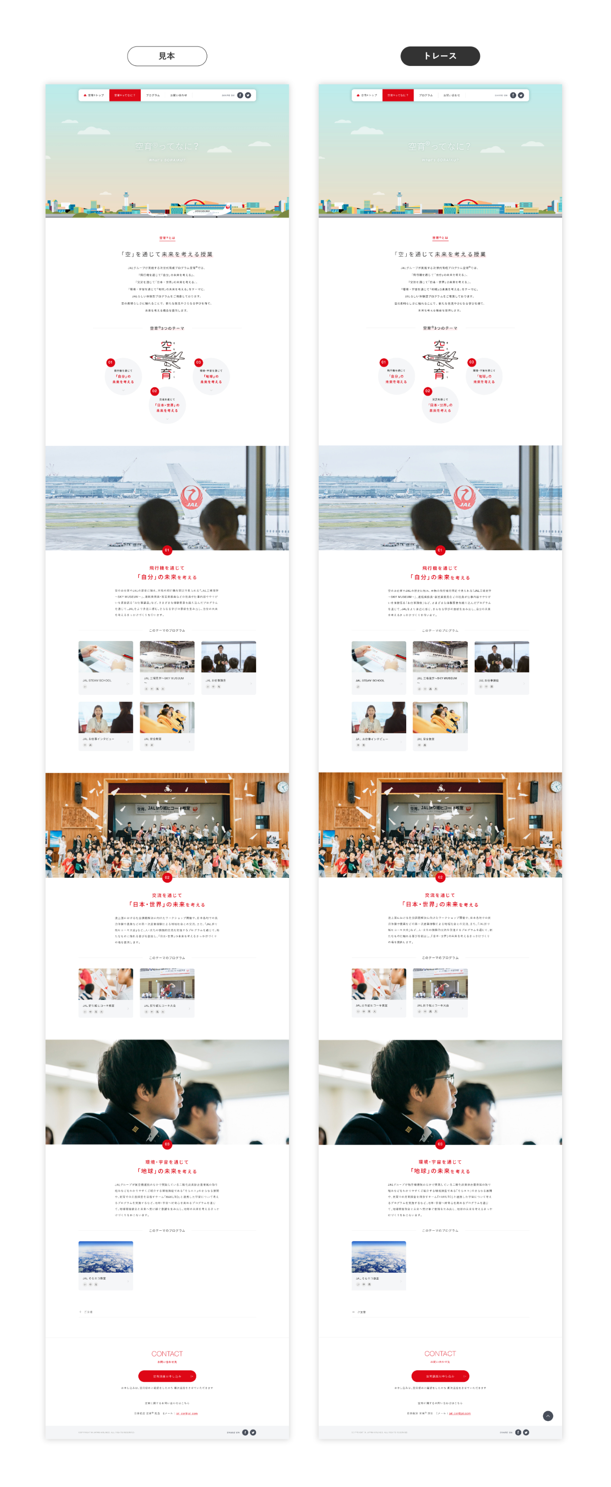 JALさんが実施する次世代育成プログラム空育®のLPをトレースしました。(https://www.jal.com/ja/csr/soraiku/concept/)