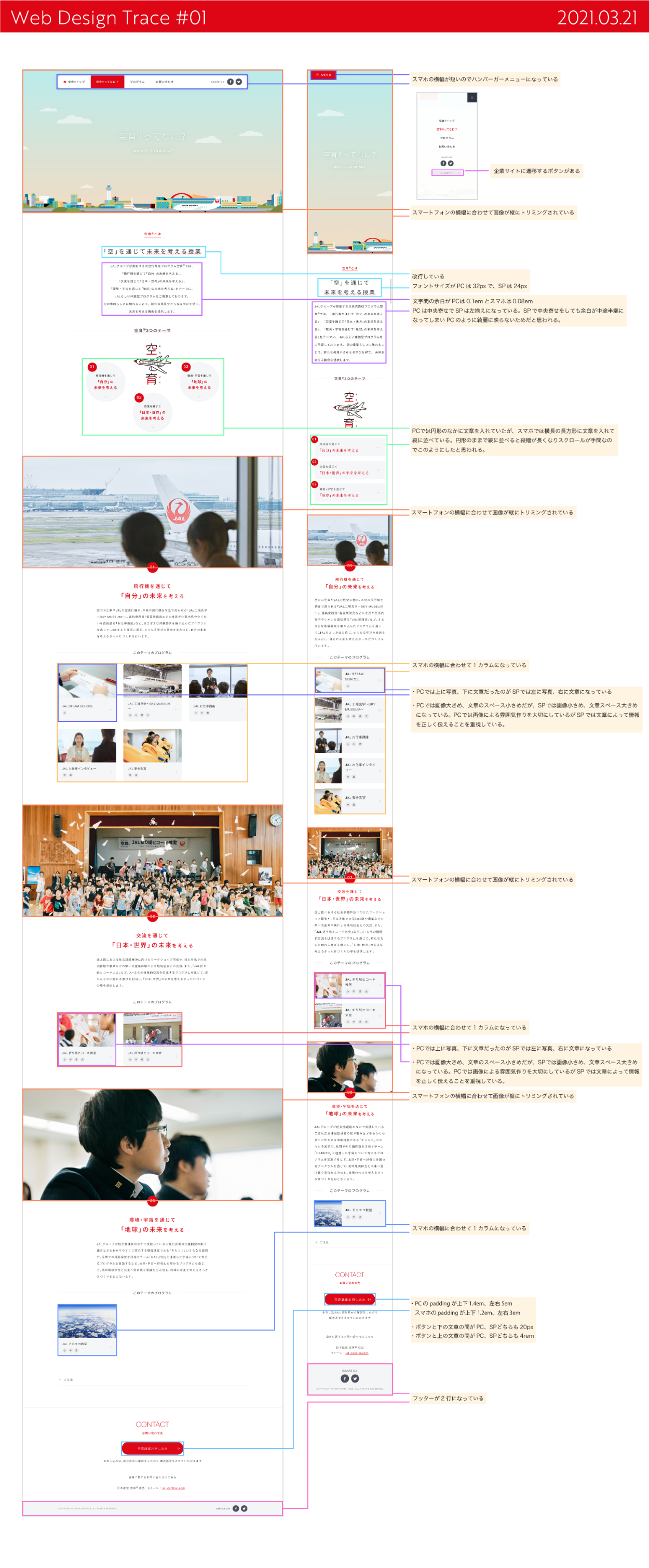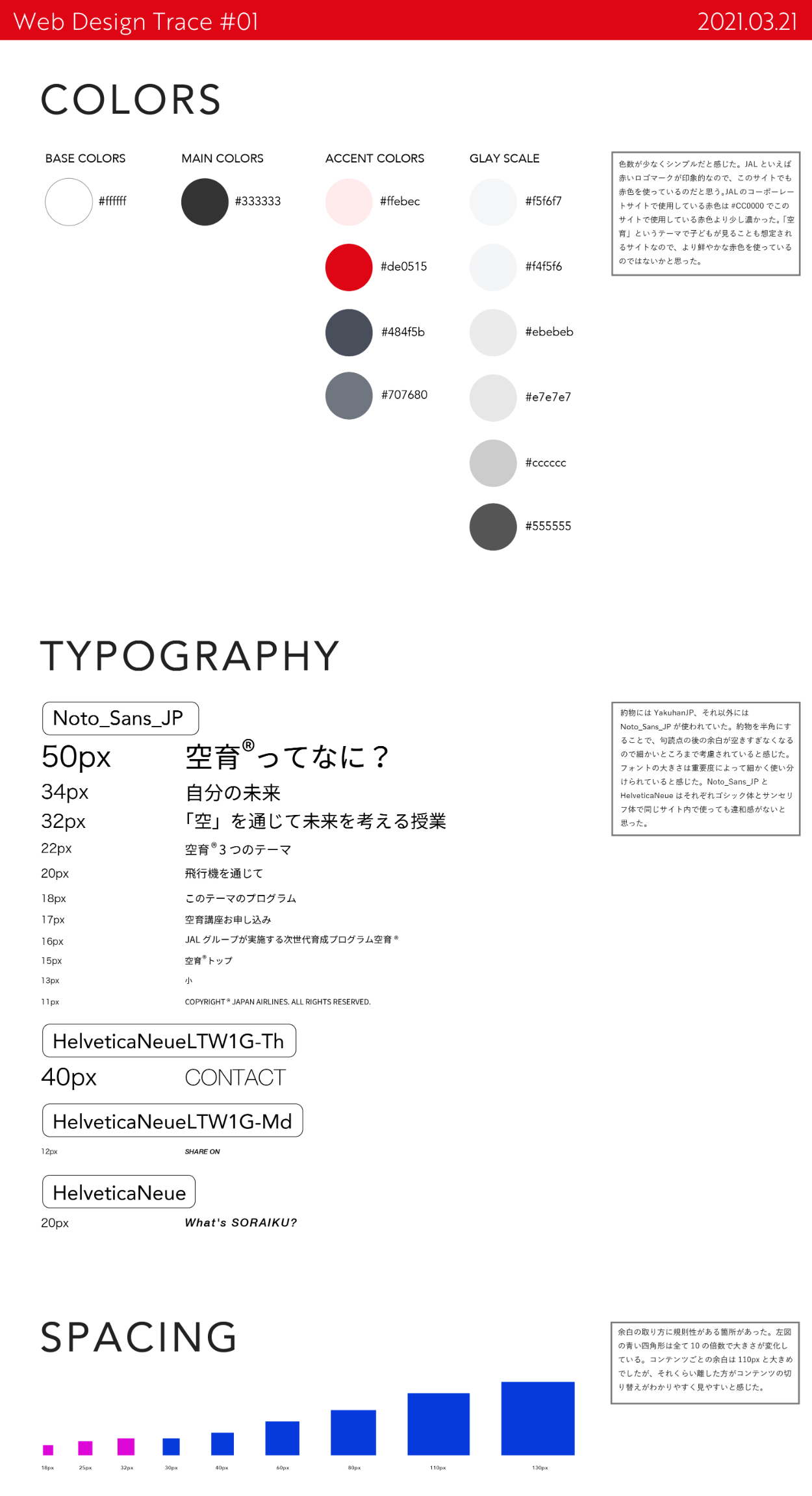 SHElikes マルチクリエイターコース課題でJALさんが実施する次世代育成プログラム空育®LPのトレース、スタイルガイド作成、PCとSPの比較分析をまとめました。(https://www.jal.com/ja/csr/soraiku/concept/#world)