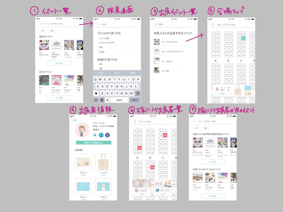 2日間のデザインハッカソンにて、同人即売会のマップアプリのUIを制作しました。