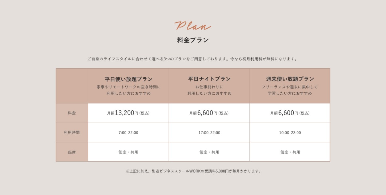 (ビジネススクールWORK会員限定のカフェ&コワーキングスペース)