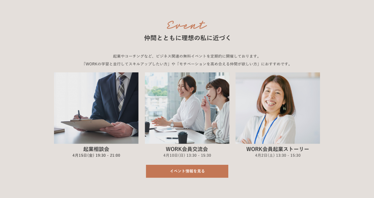 イベント情報は更新頻度が高いのでコンセプトの下に配置しました。