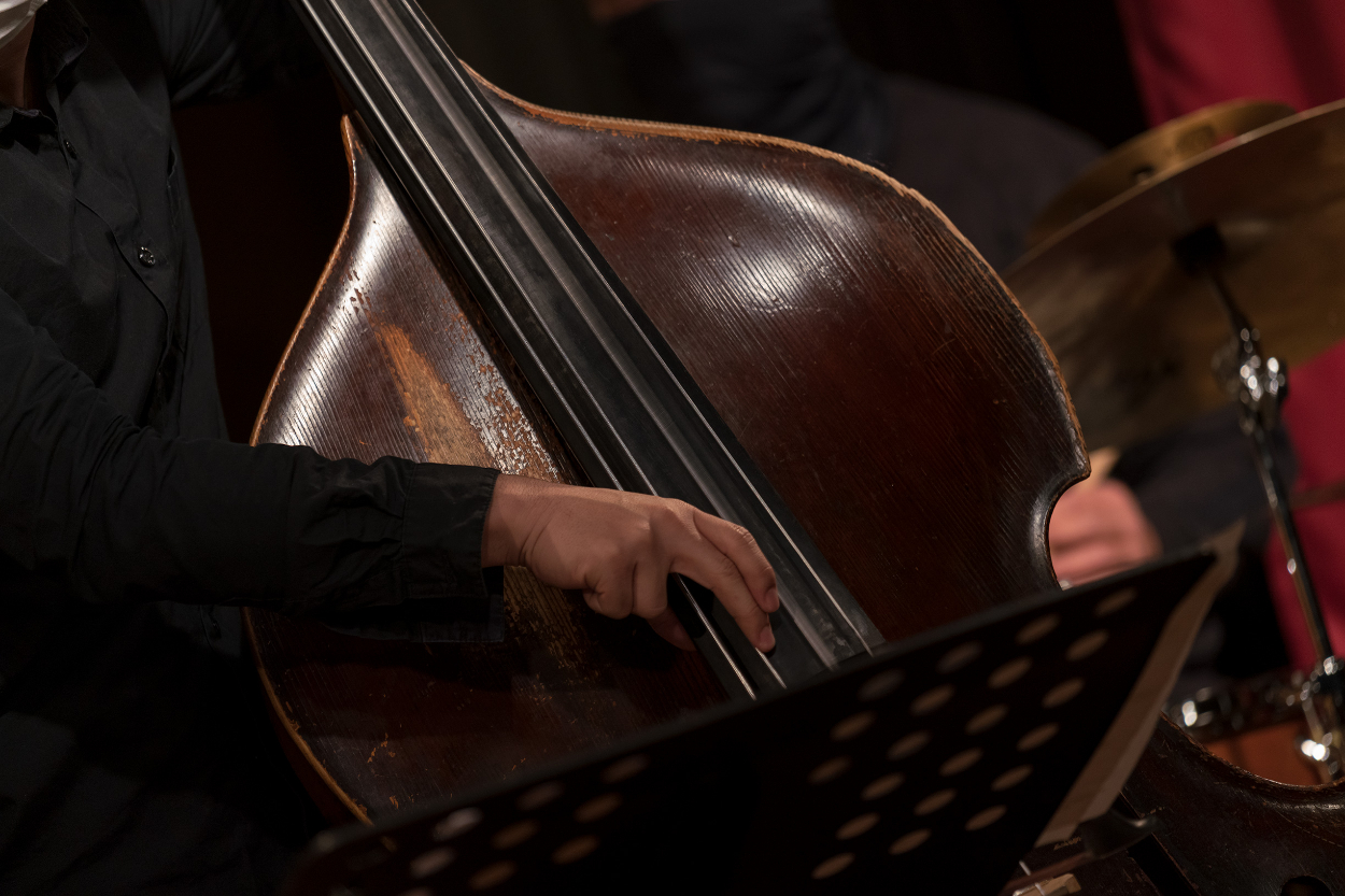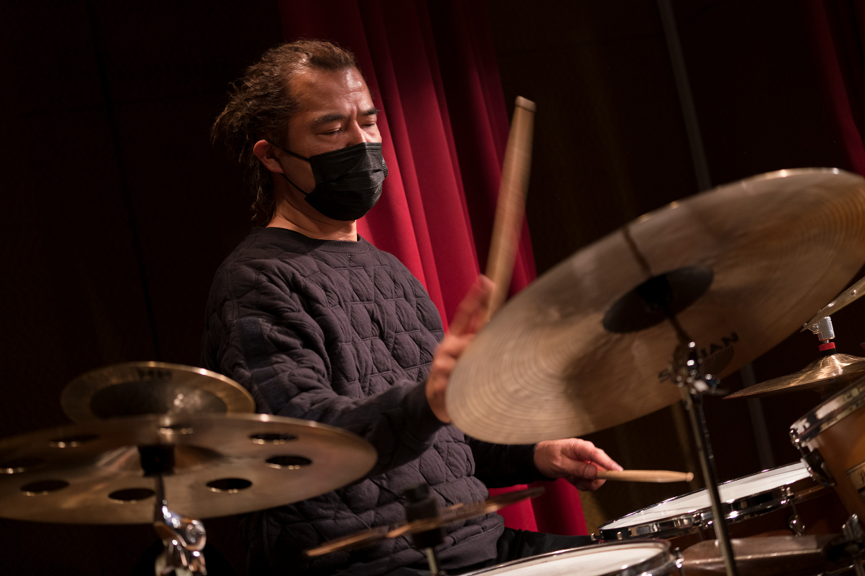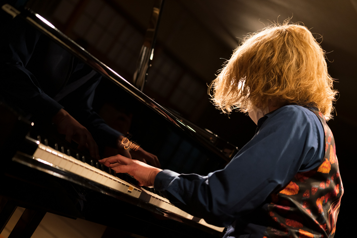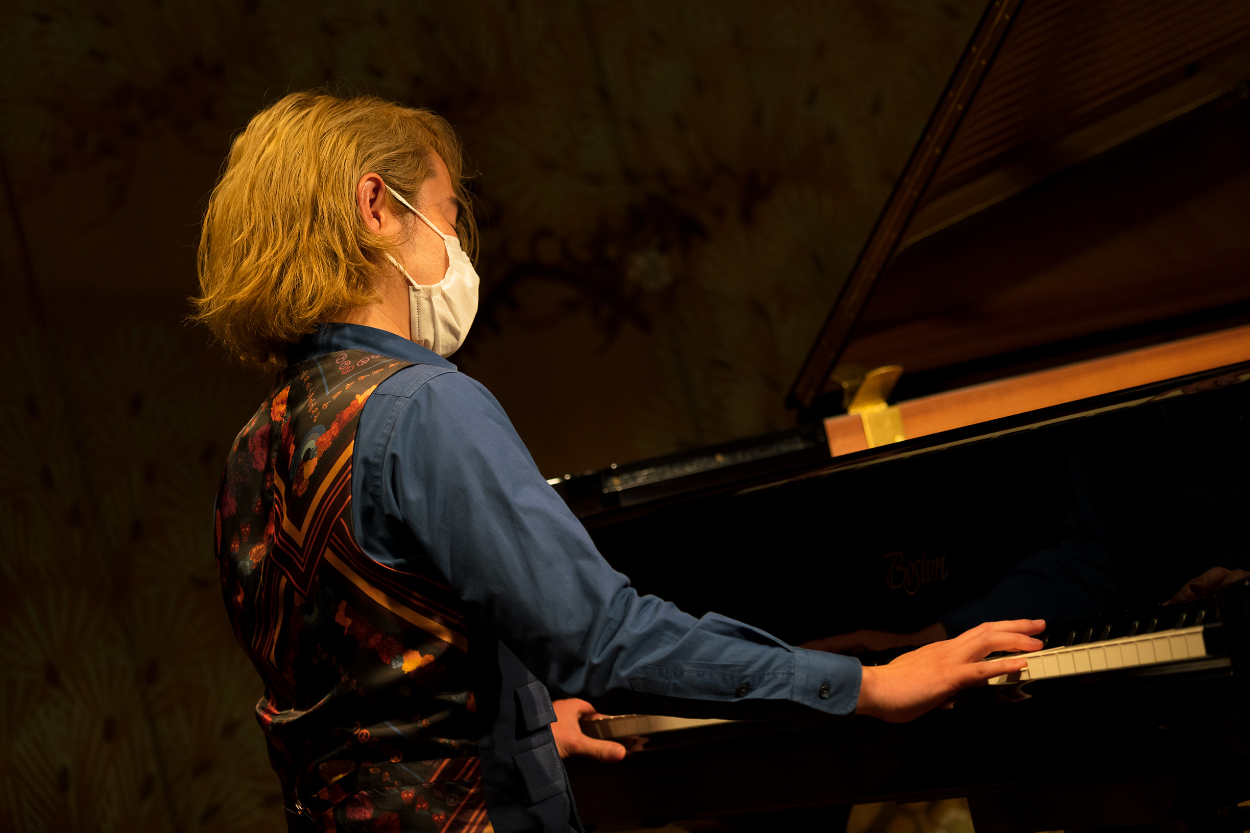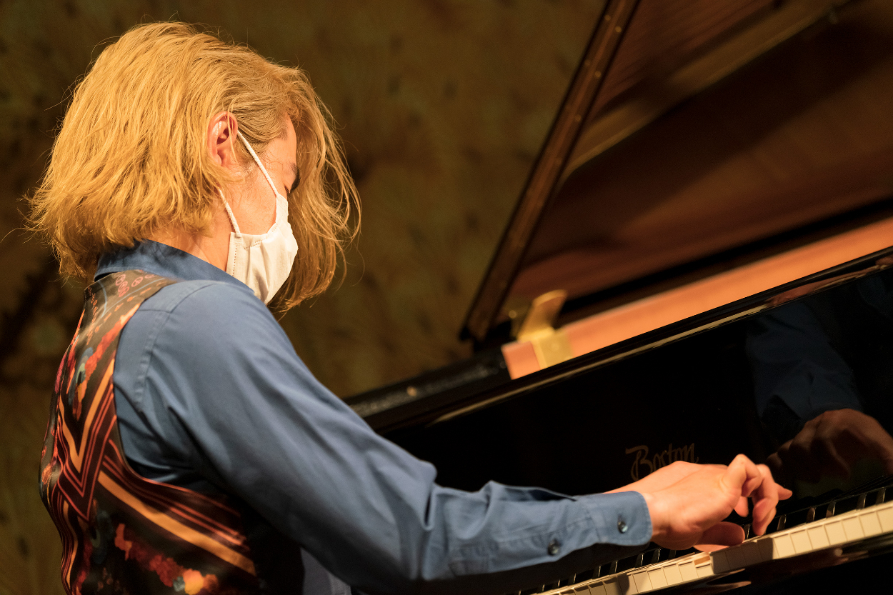 初潮旅館で開催された海音ジャズのライブ撮影。ピアノは松本圭使さん、ベースは権上康志さん。ゲストにはドラムの藤山"E.T."英一郎さん。緊急事態宣言により無観客での収録ライブとなりました。