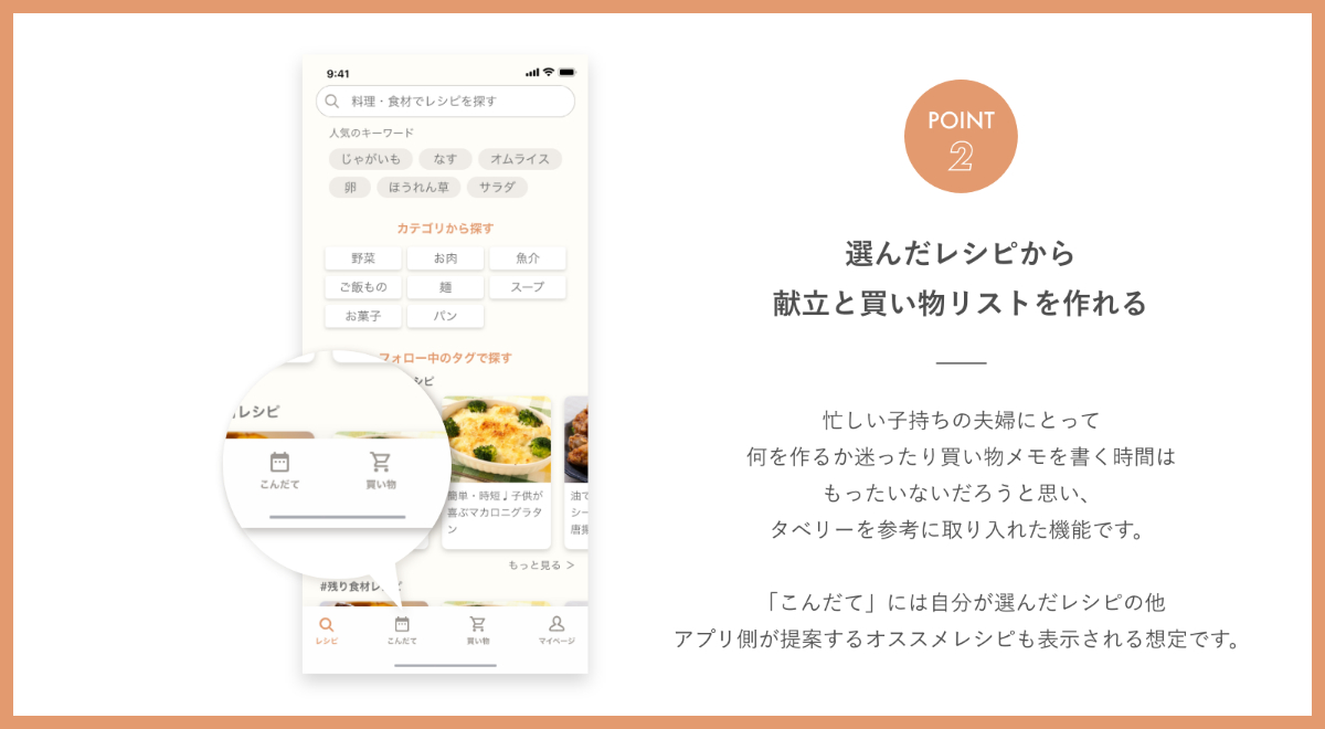②コンセプト「冷蔵庫にある食材で手軽にできる料理アプリ」から考えたこと