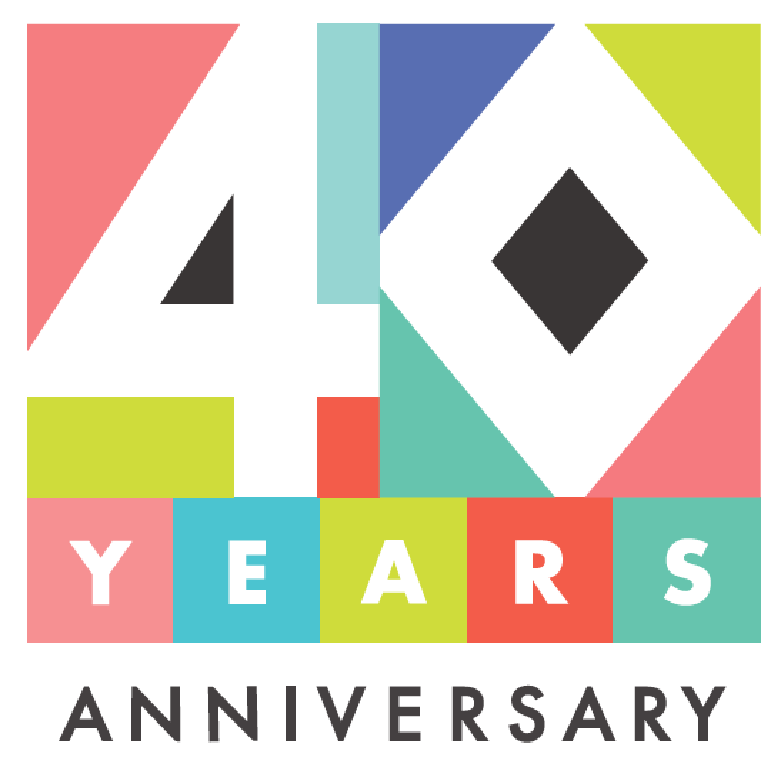 ロゴデザインは40周年を迎える県民ホールにまつわるワードをキーワードにして作成。カラフルな色の面の配色で40の数字を作成し、様々な要素や歴史から積み重ね作り上げられてきた40年をイメージしてデザイン。