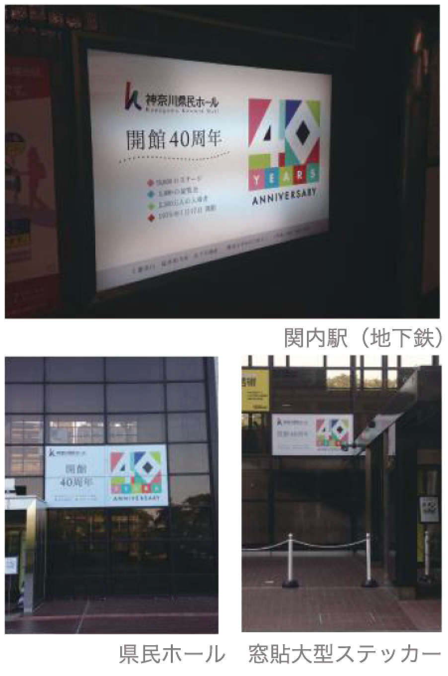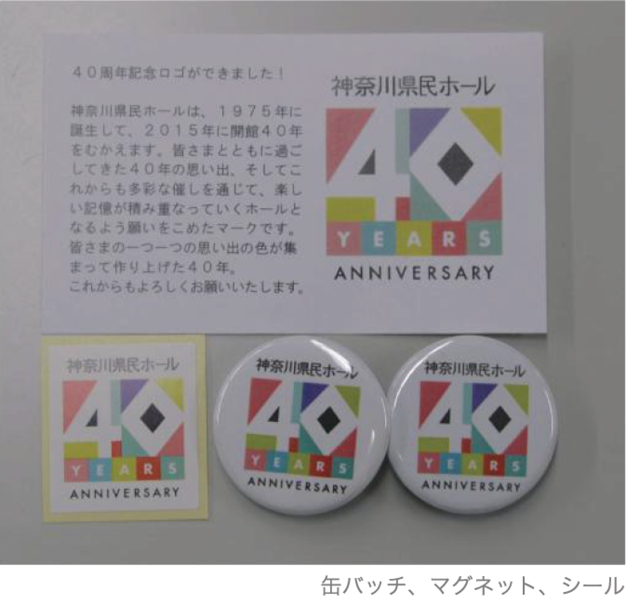 2015年に開館40周年を迎える神奈川県民ホールの周年ロゴを作成。 ロゴをはじめ、ポスター・電光掲示板・記念グッズをデザイン。